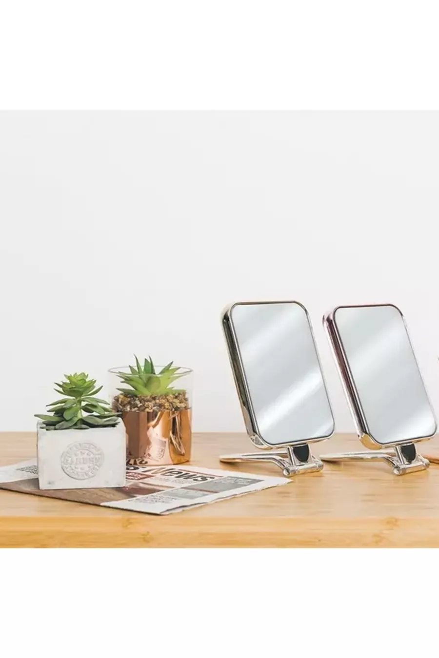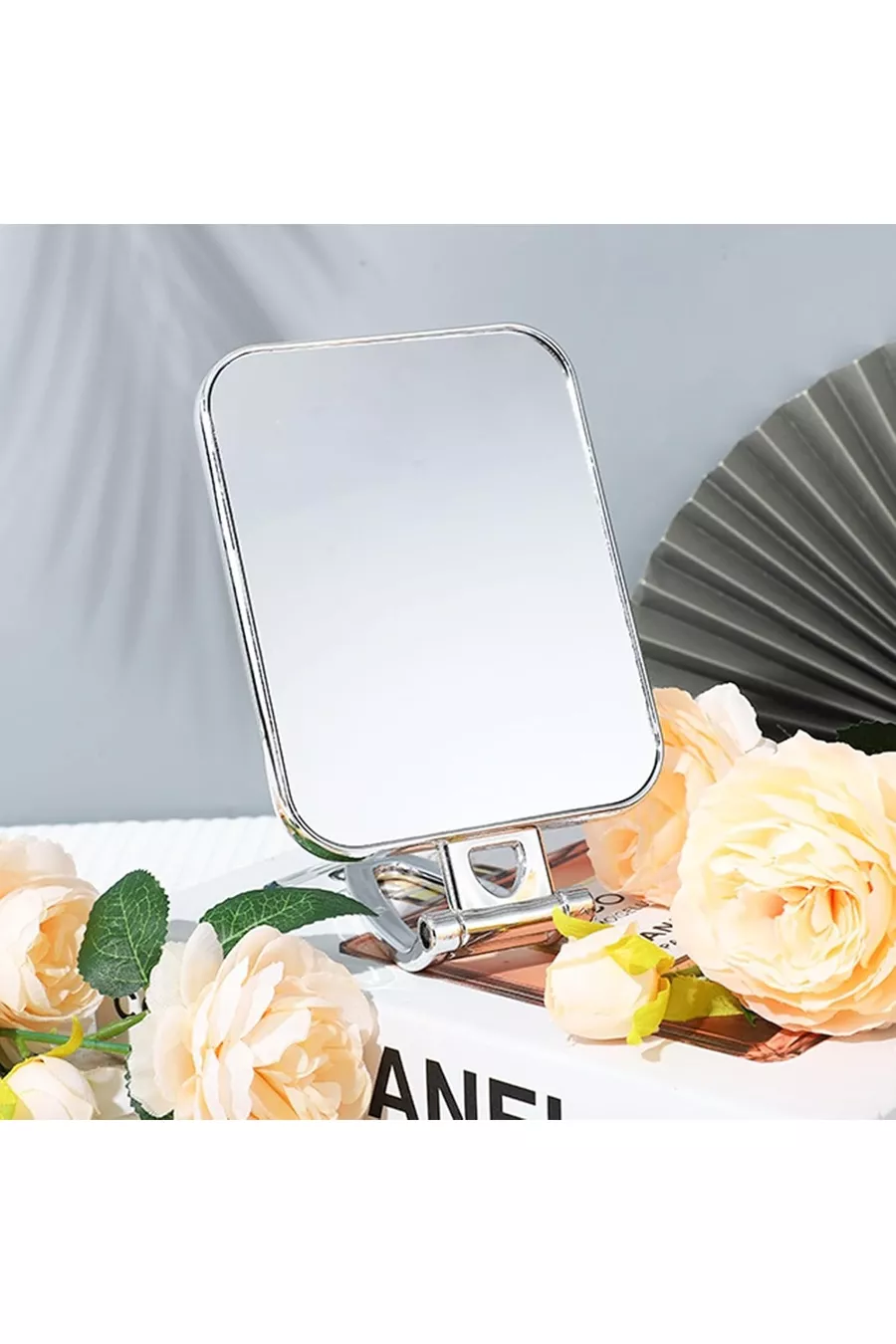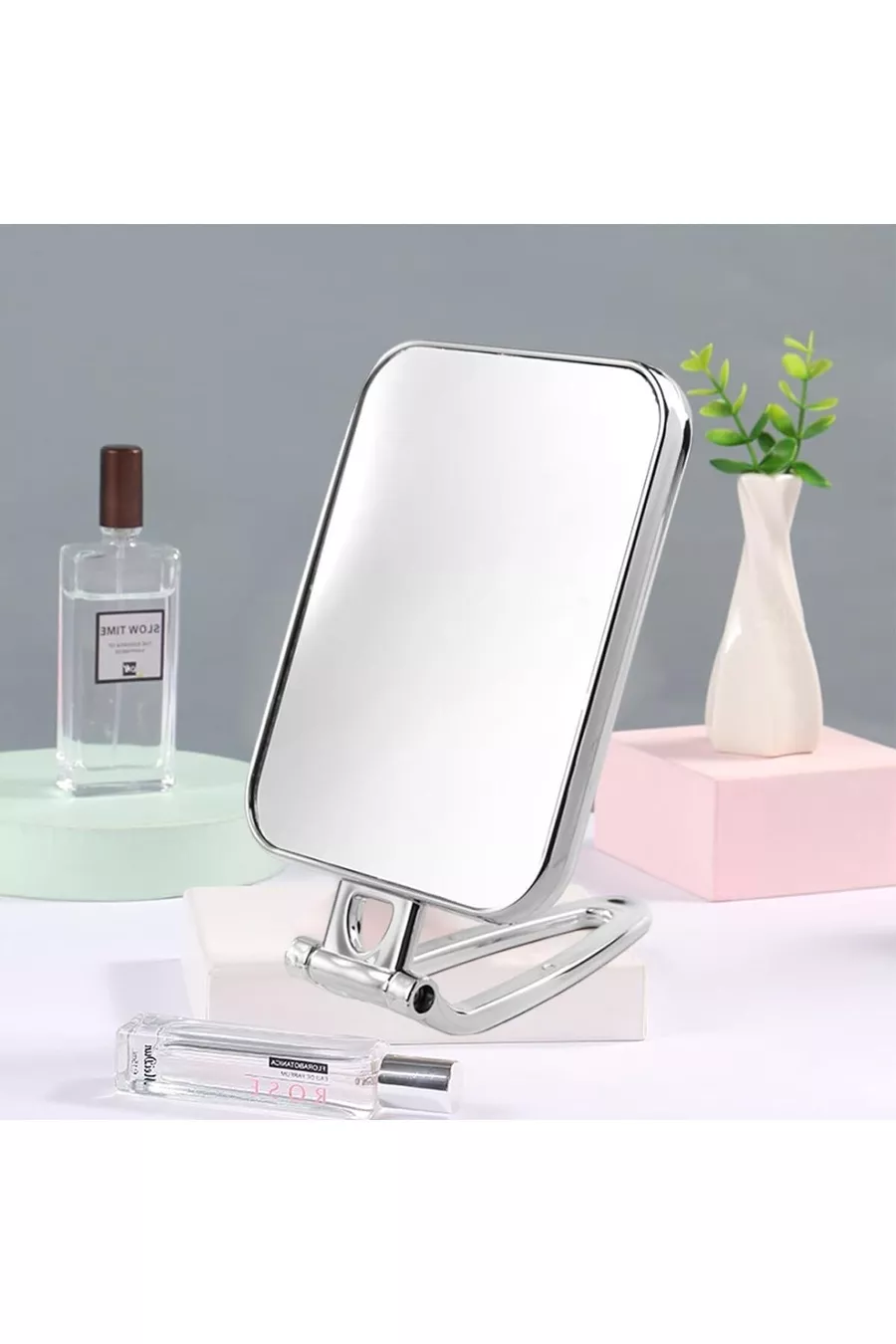 مرآة مكياج مزدوجة الوجه للمنضدة بقاعدة كروم مرآة مكتبية مرآة يدوية