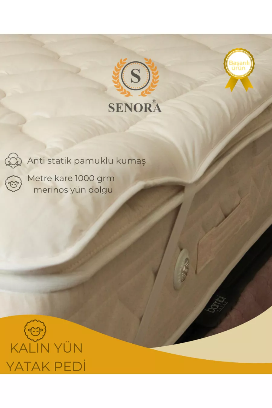 مرتبة وفرشة سميكة من صوف الحمل الطبيعي ٪ ميرينوس، بكثافة جرام لكل متر مربع