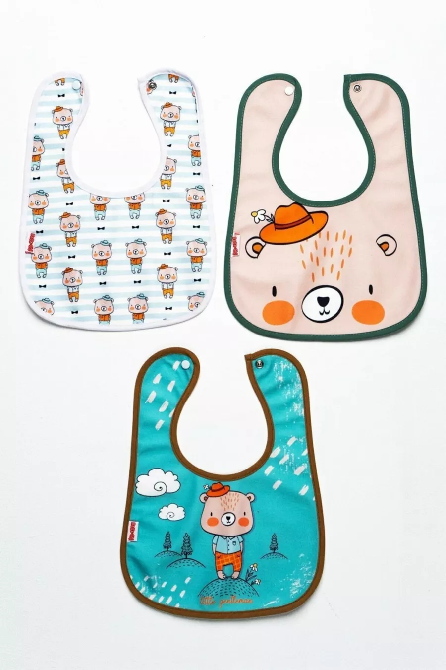 مريلة طعام مربعة من 3 قطع من ميكروفايبر بطابع السيد الصغير، في صندوقها الخاص (مضادة للماء) بزر ضغط