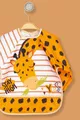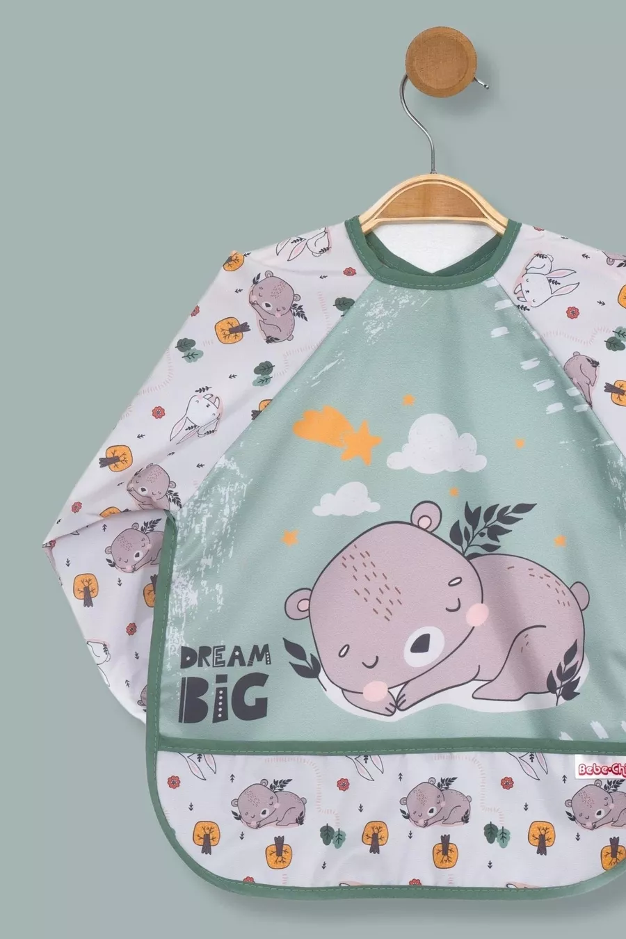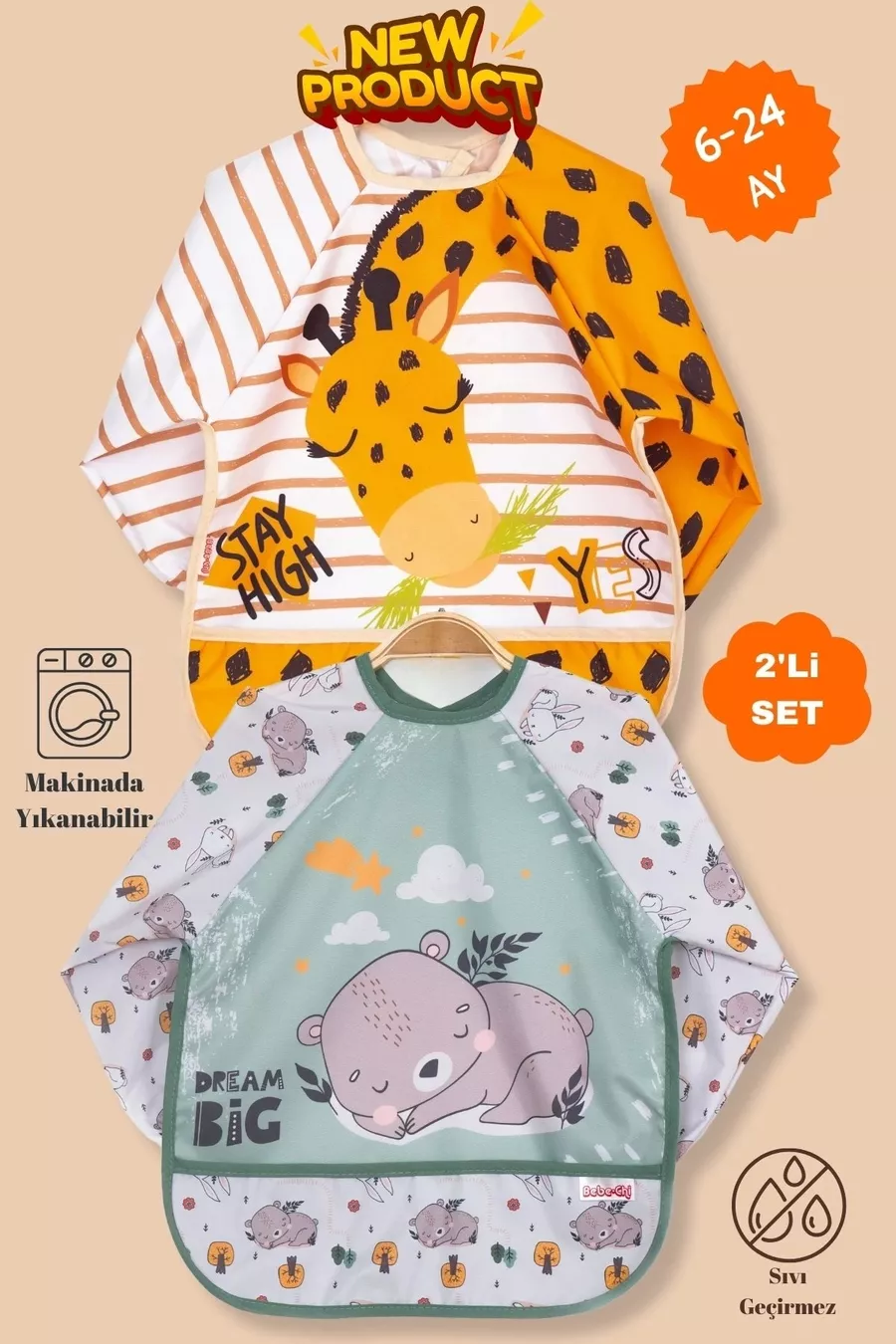 مريول طويل الأكمام مزدوج برسوم زرافة ودب لطيف مقاوم للسائل للأنشطة وتناول الطعام للأطفال