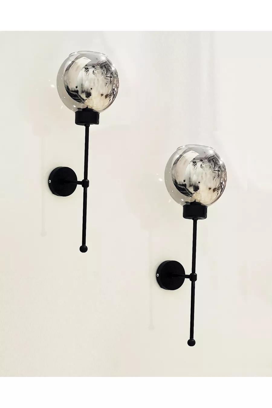 مصباح حائطي مع زجاج مدخن وإطار معدني أسود مودرن 2 قطعة يعمل بالبطارية - تصميم خاص، مصباح وبطاريات مشمولة