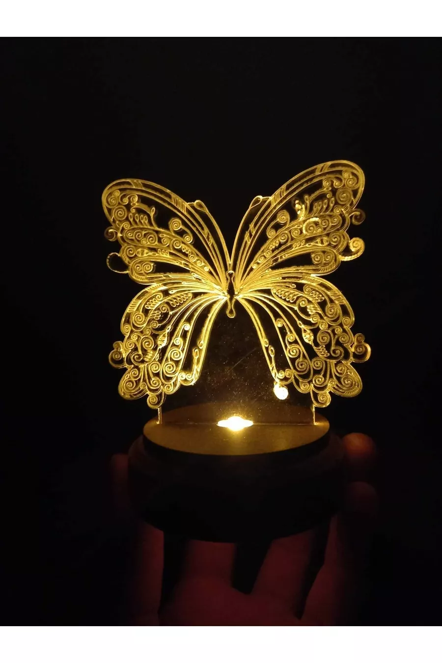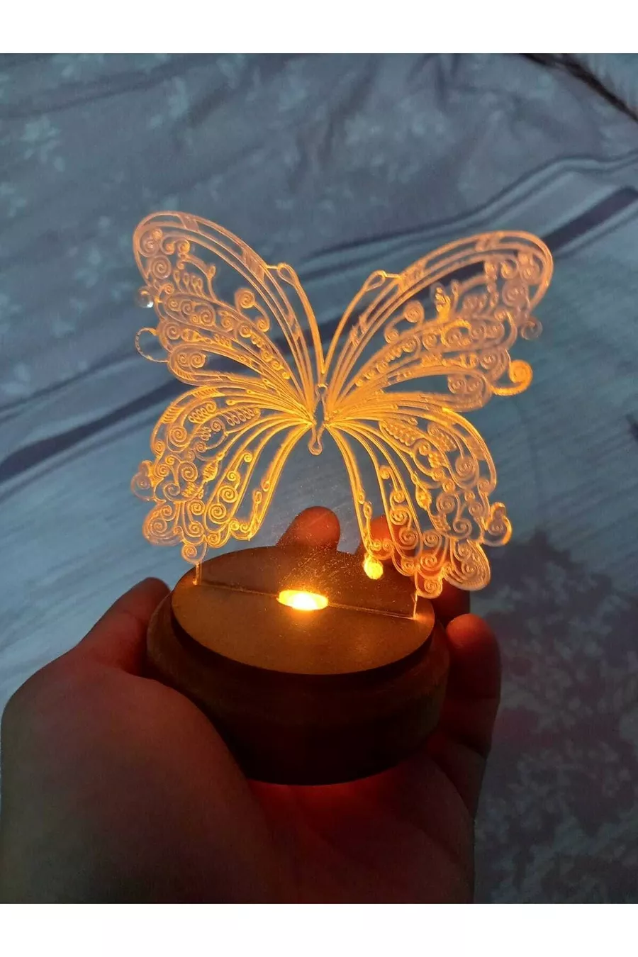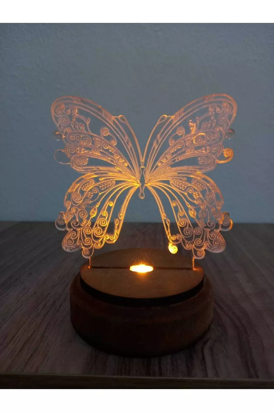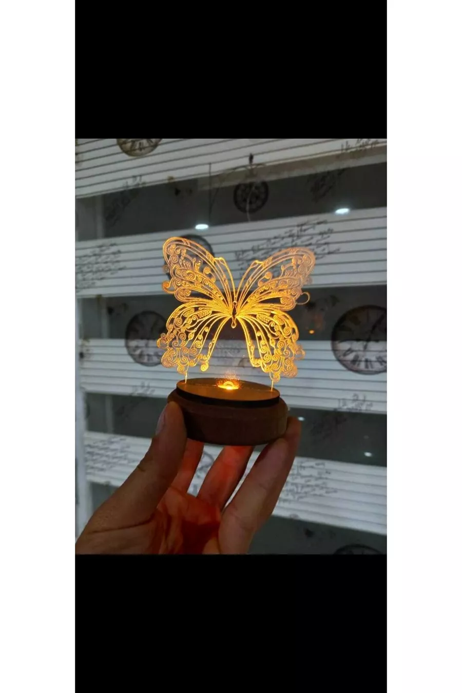 مصباح مكتبي هدية بأرضية خشبية مع فراشة مضيئة ثلاثية الأبعاد