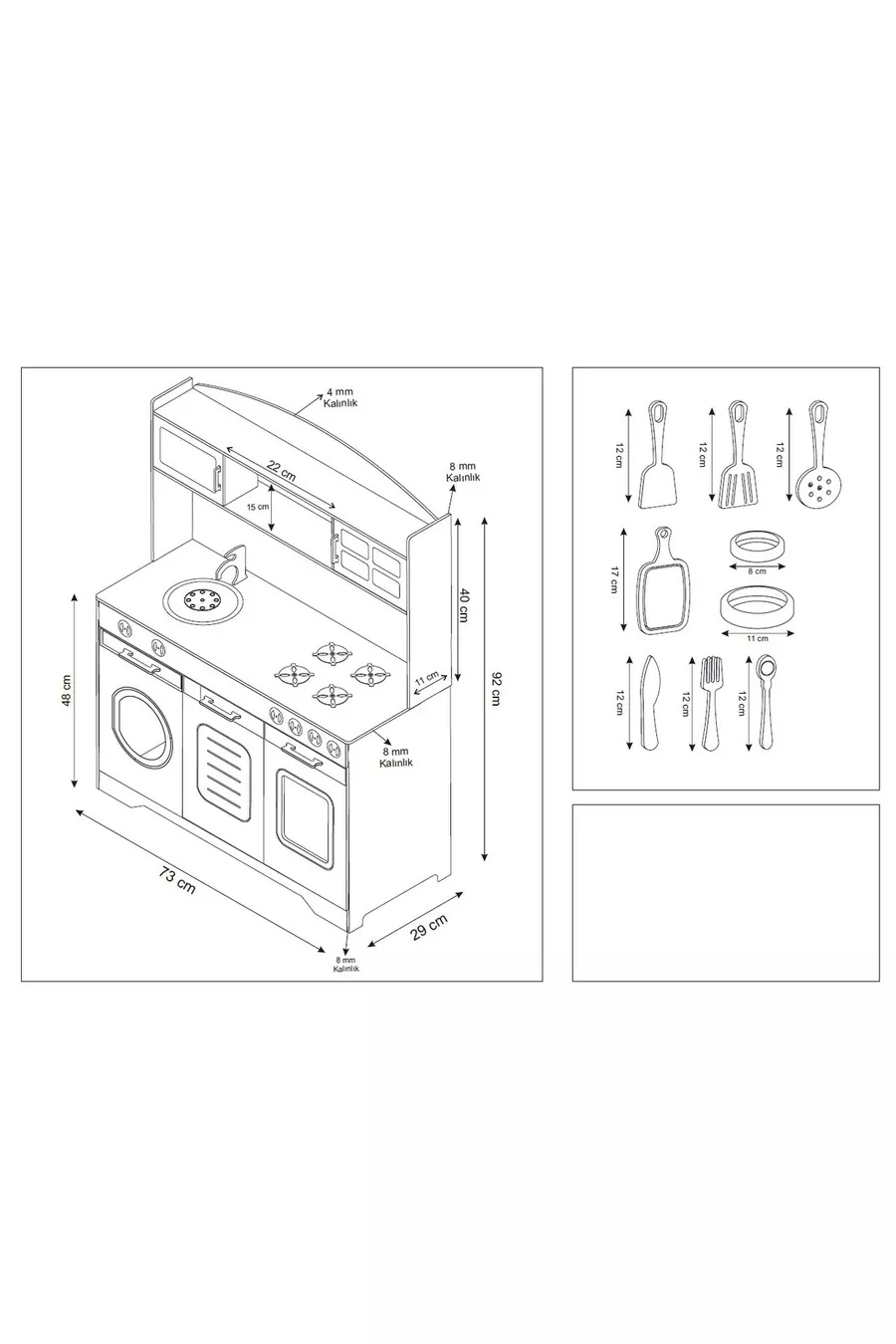 محتويات العبوة: 2+ العمر: 3+ سنوات ميزات أخرى: مطبخ ألعاب متعدد الأغراض المنشأ: تركيا