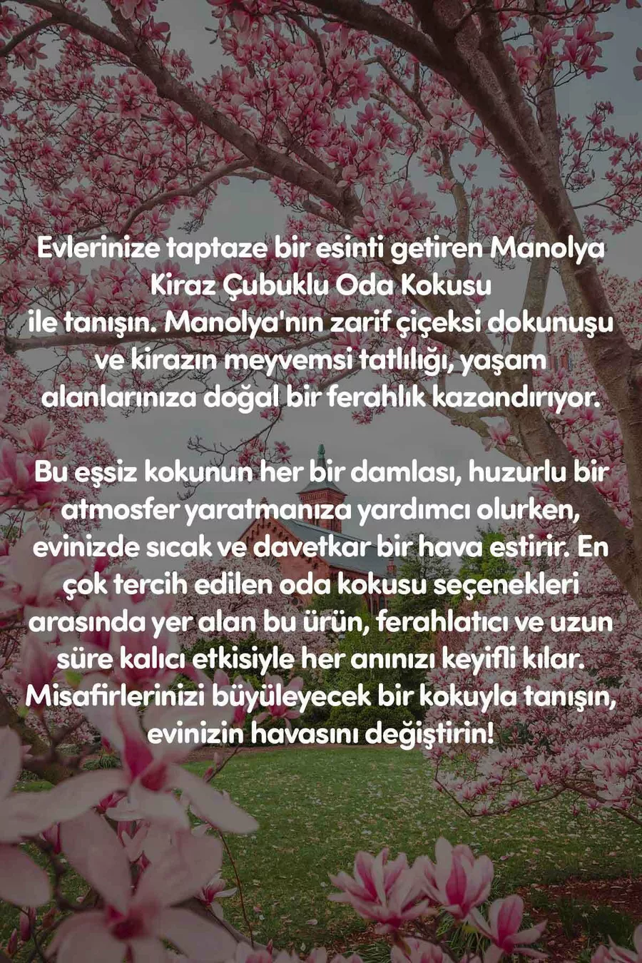 النوع: معطر غرفة بالعصي رائحة العطر: مانوليا كرز ميزات أخرى: معطر غرفة ديكوري بالعصي برائحة مانوليا كرز، موزع روائح 100 مل المنشأ: تركيا