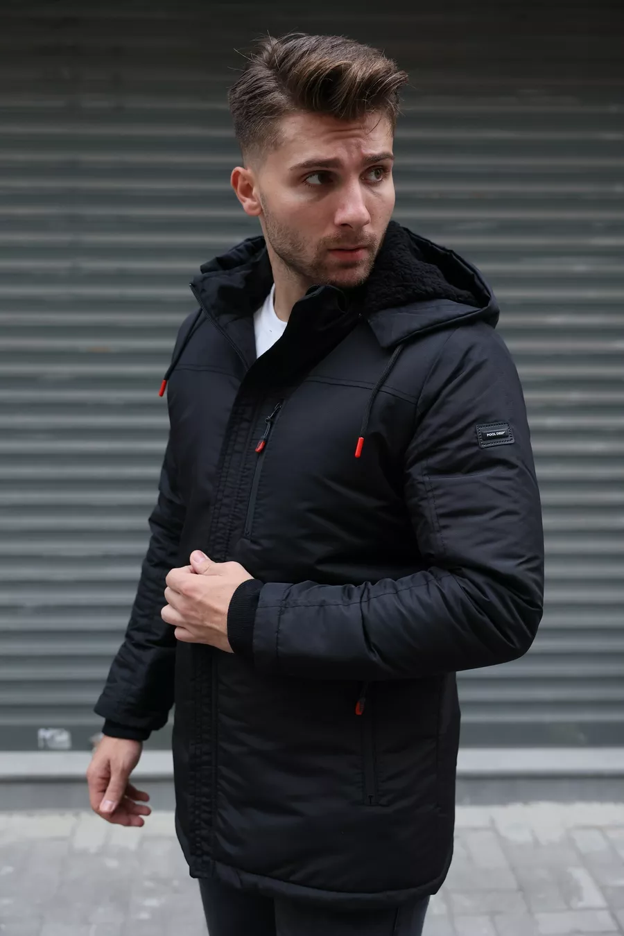 معطف رجالي مبطن بالفرو ومضاد للماء والمطر