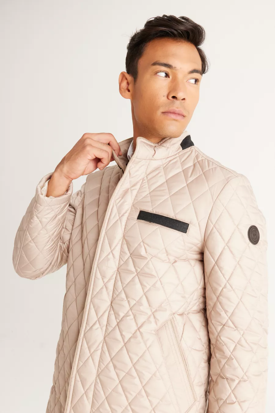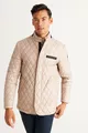 معطف رجالي بيج بقصة عادية ومقاس قياسي وياقة مستقيمة وتطريز محبب