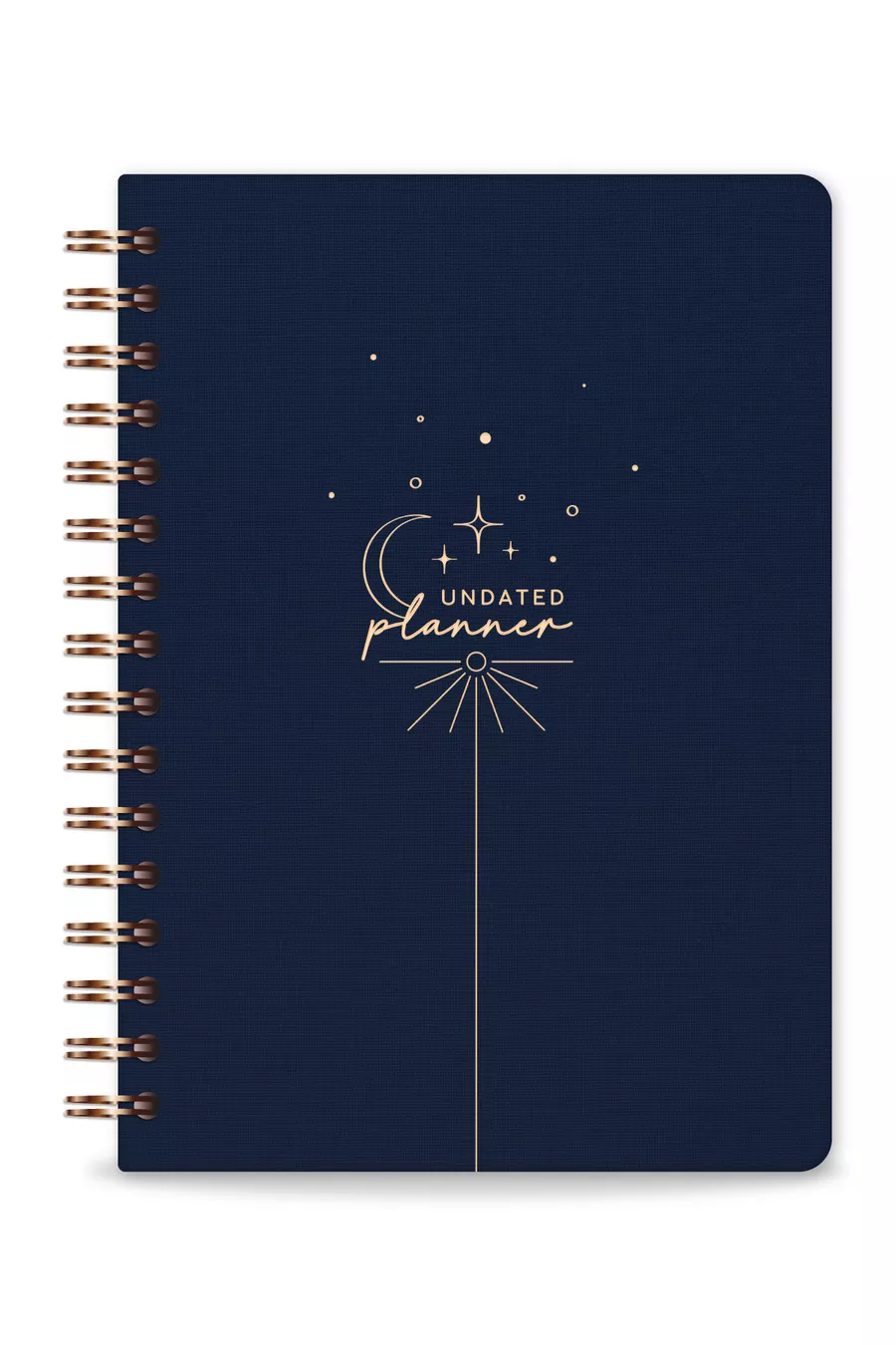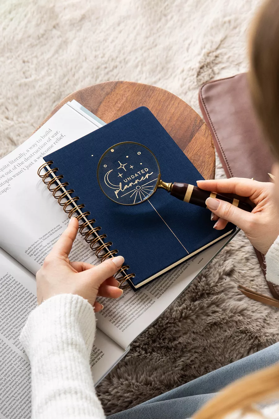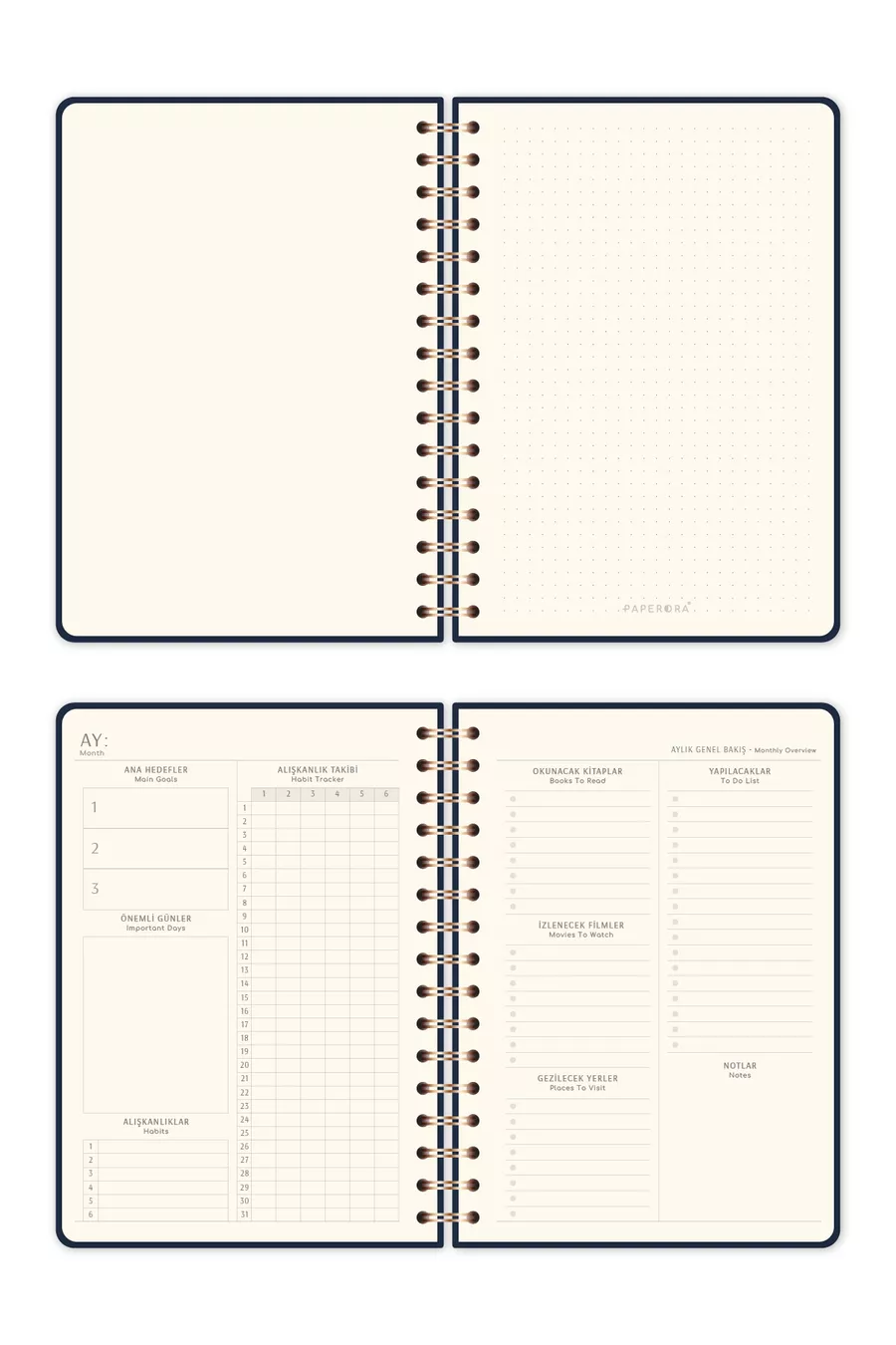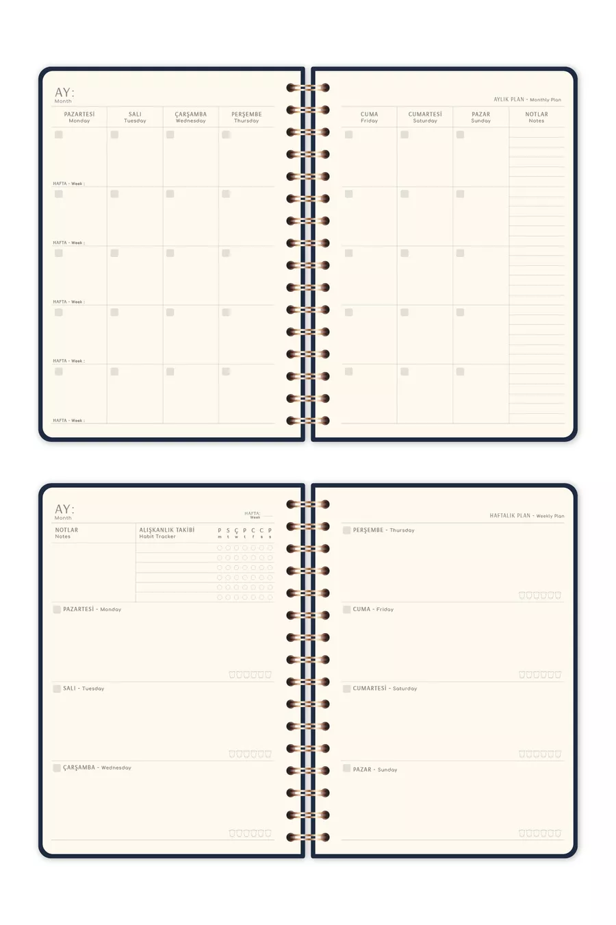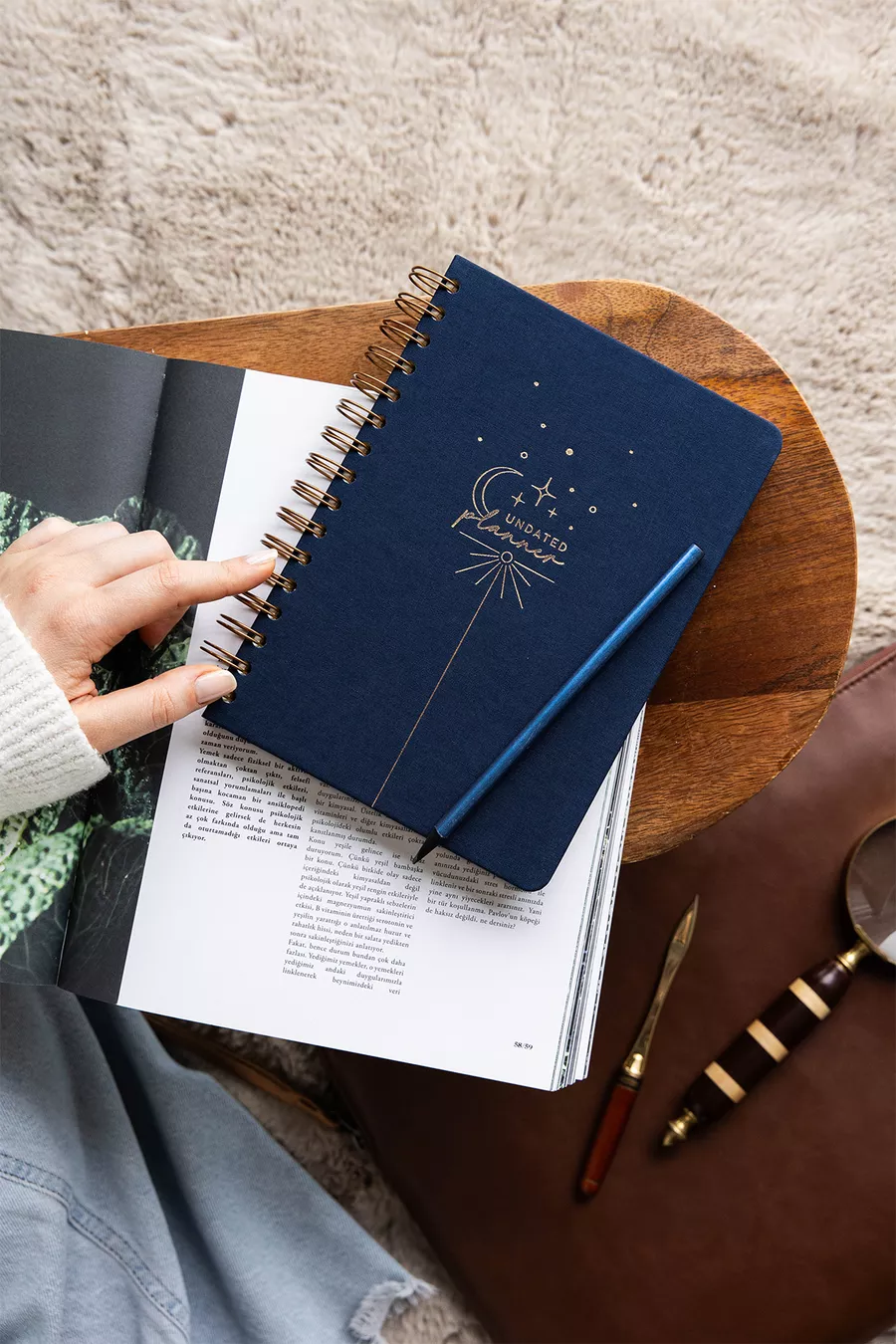مفكرة منسقة دائمة بغطاء كحلي بحبوب الكتان على شكل