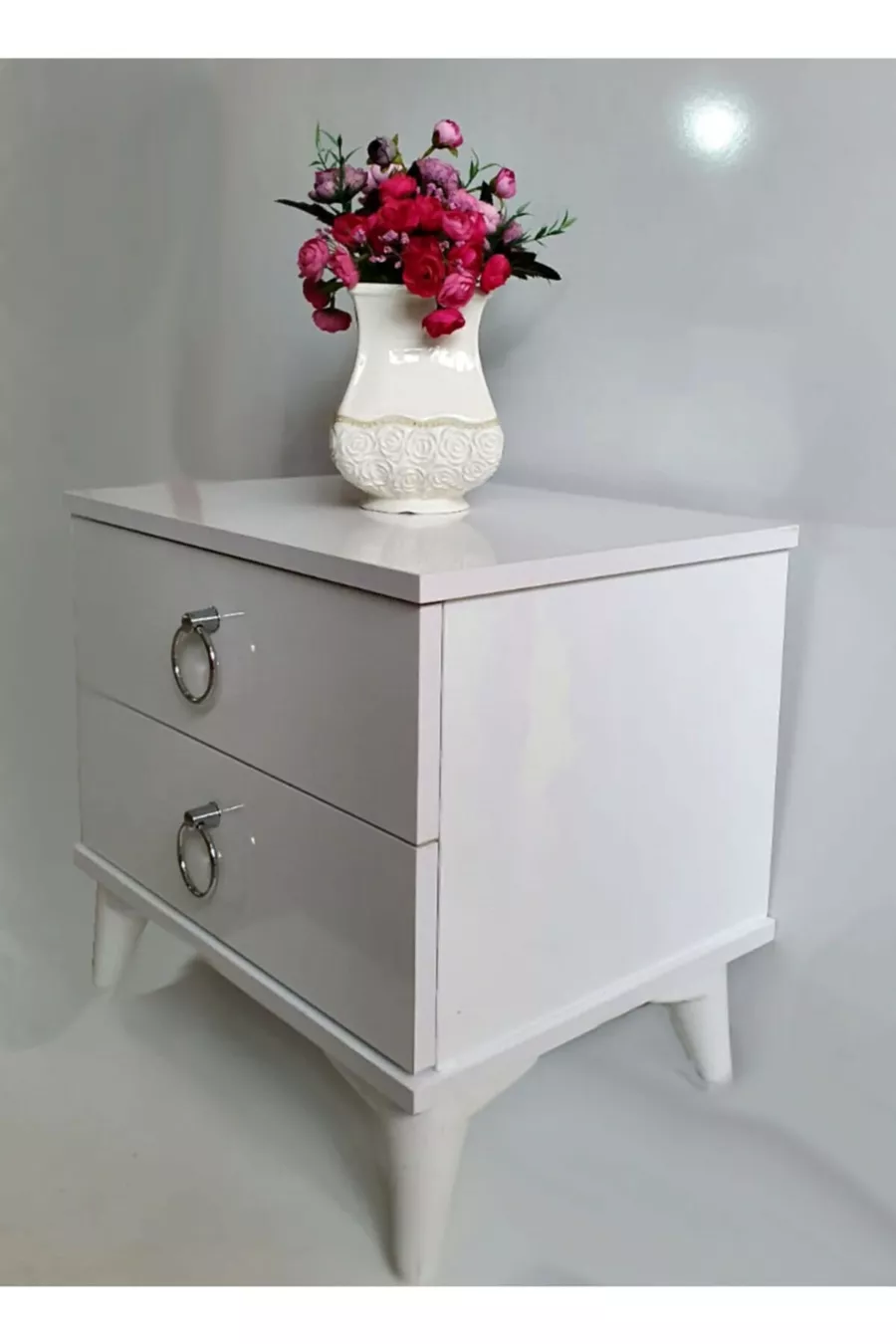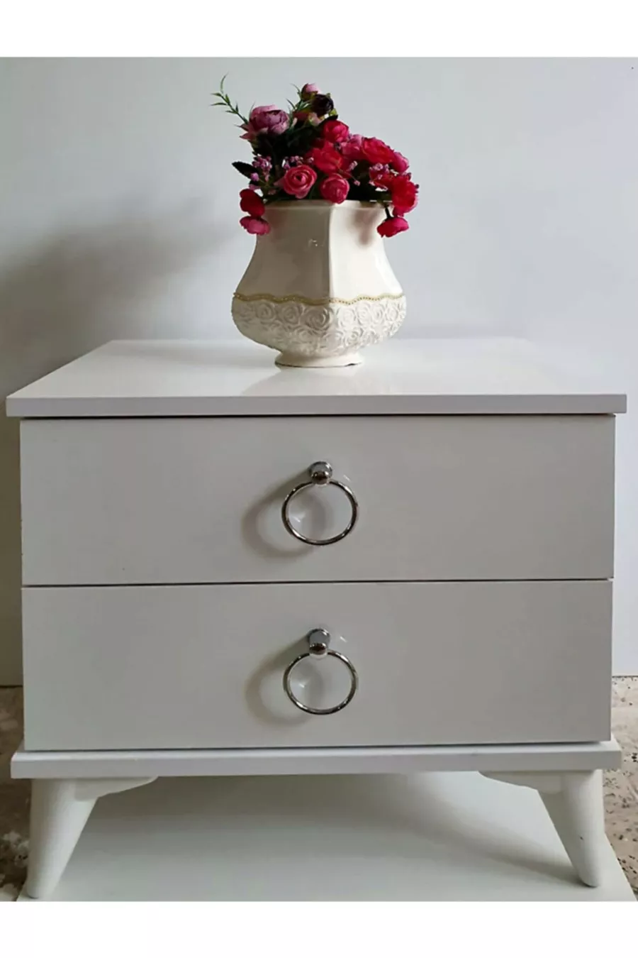 المادة: سندلام اللون: أبيض مدة الضمان: سنتان عدد الأدراج: 2 الارتفاع: 50 سم العرض: 51 سم العمق: 40 سم الطراز: كلاسيكي الخاصية: مزود بأدراج
