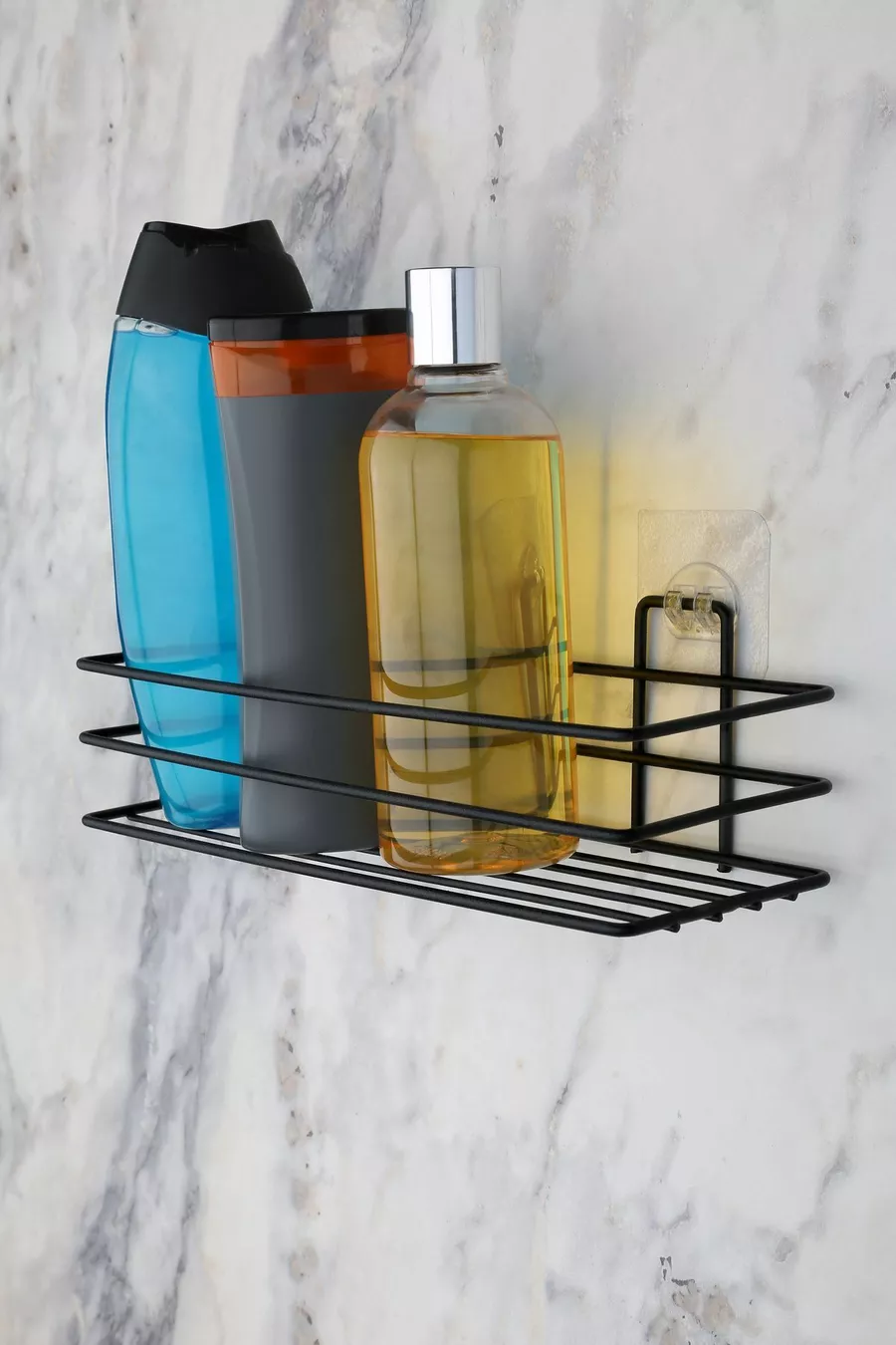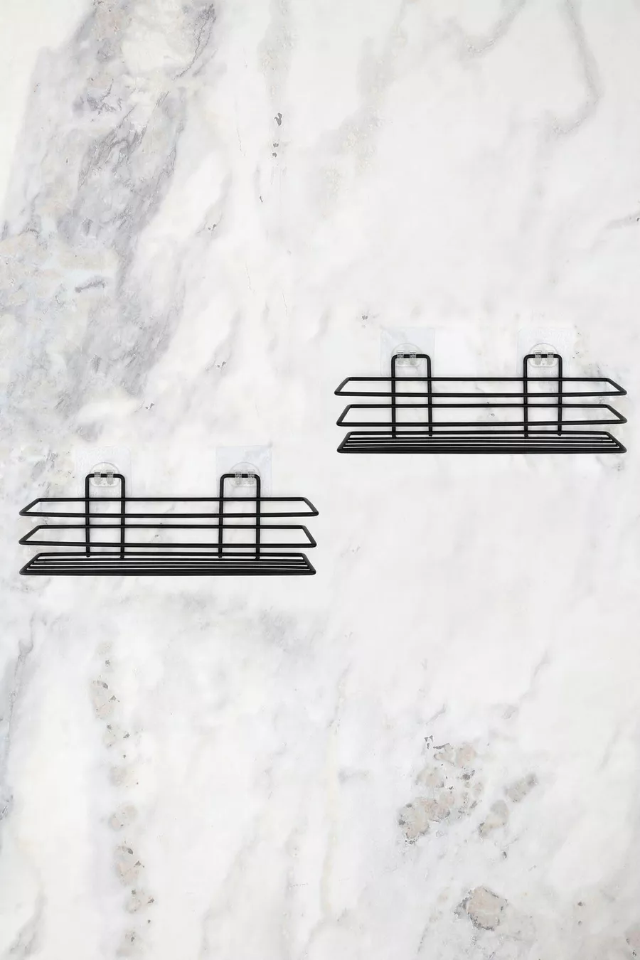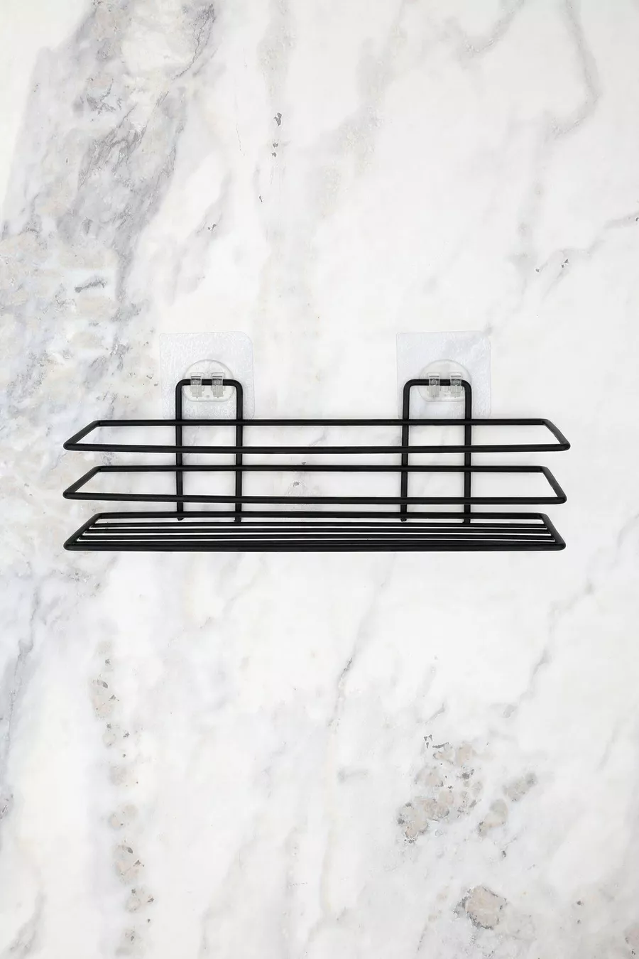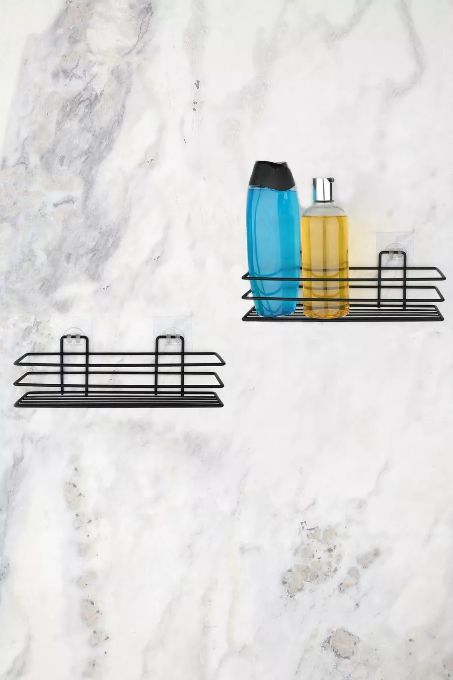 منظّم الحمام رف الحمام حاملة الصابون مجموعة من قطعتين رف دش لاصق - أسود مطفي