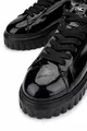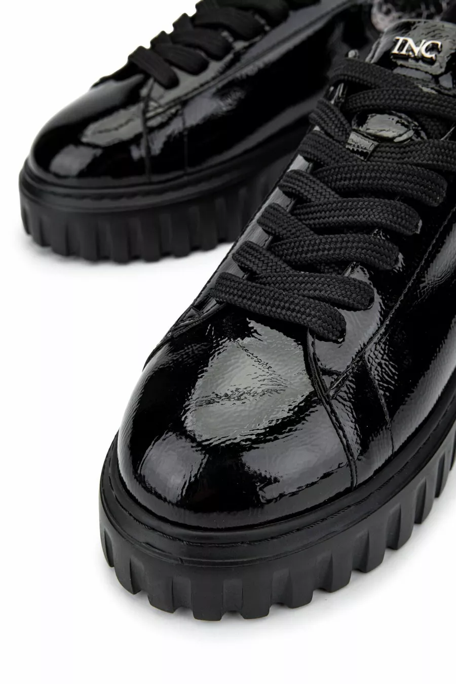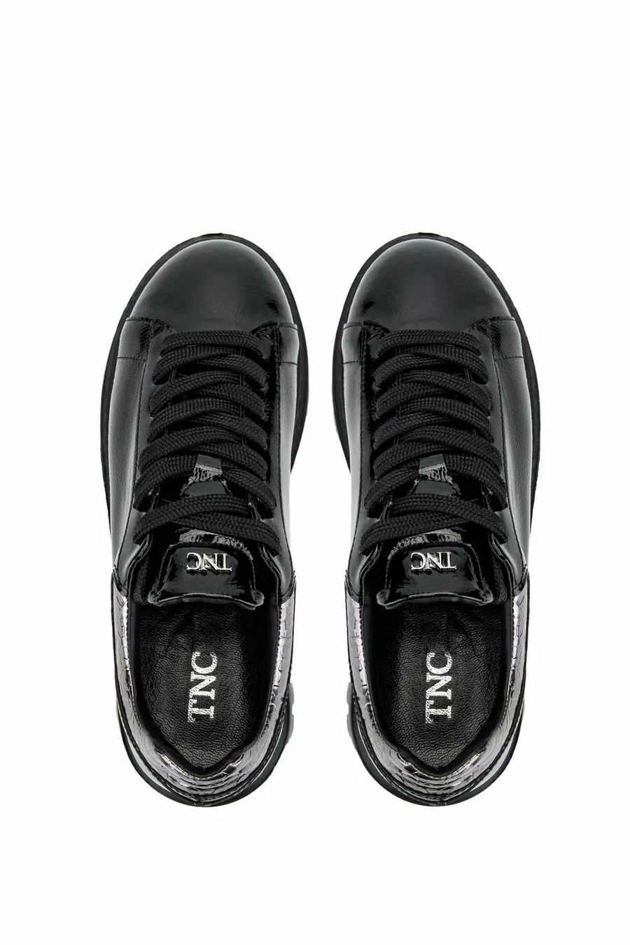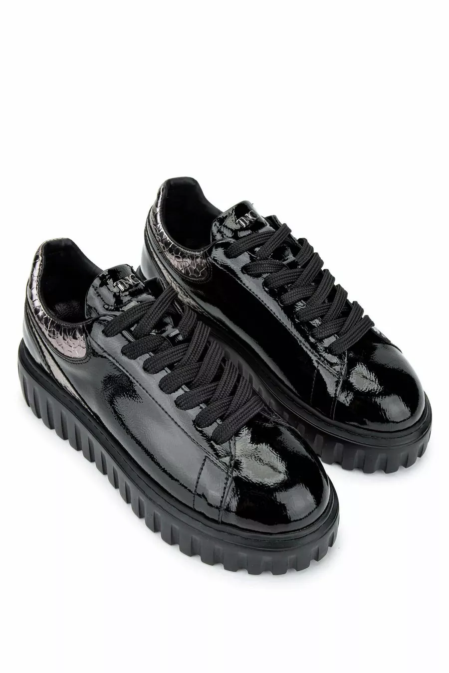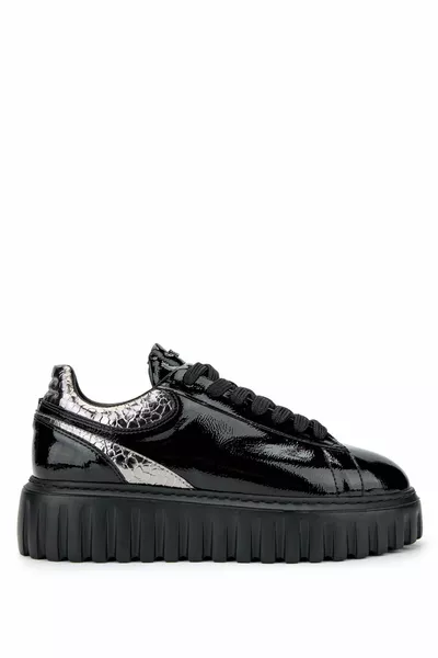 نسائي جلد طبيعي أسود براءات الاختراع الجلود أحذية رياضية وأحذية رياضية