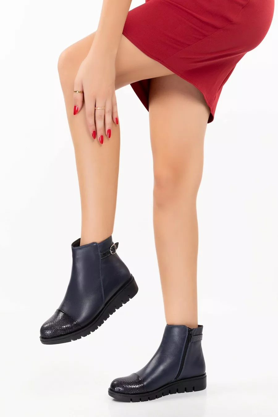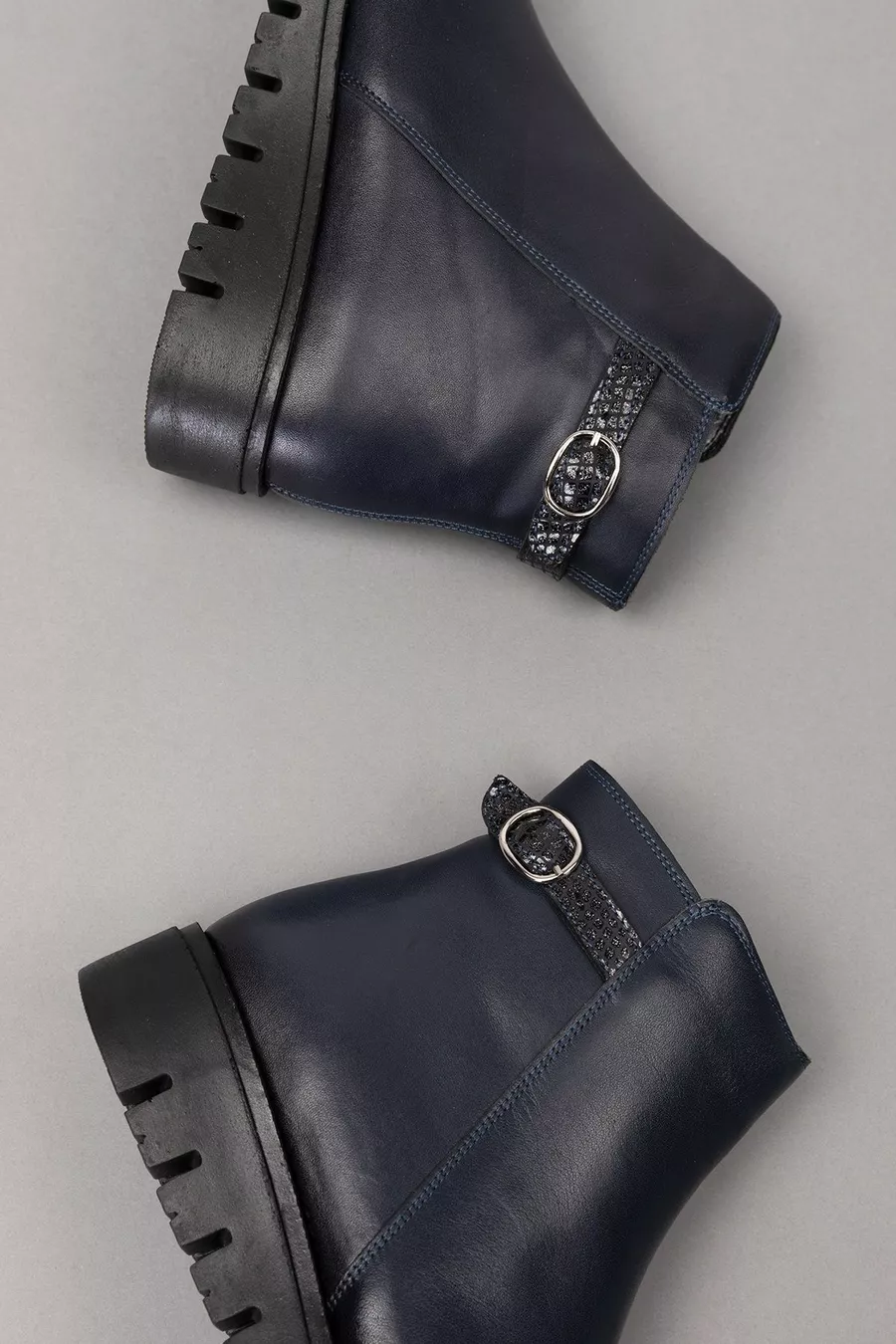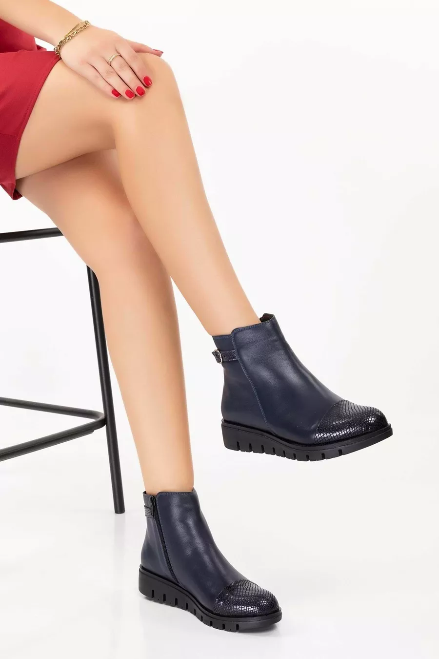 نسائي جلد طبيعي على شكل قرص العسل أحذية مفصلة elnr. الأزرق الداكن