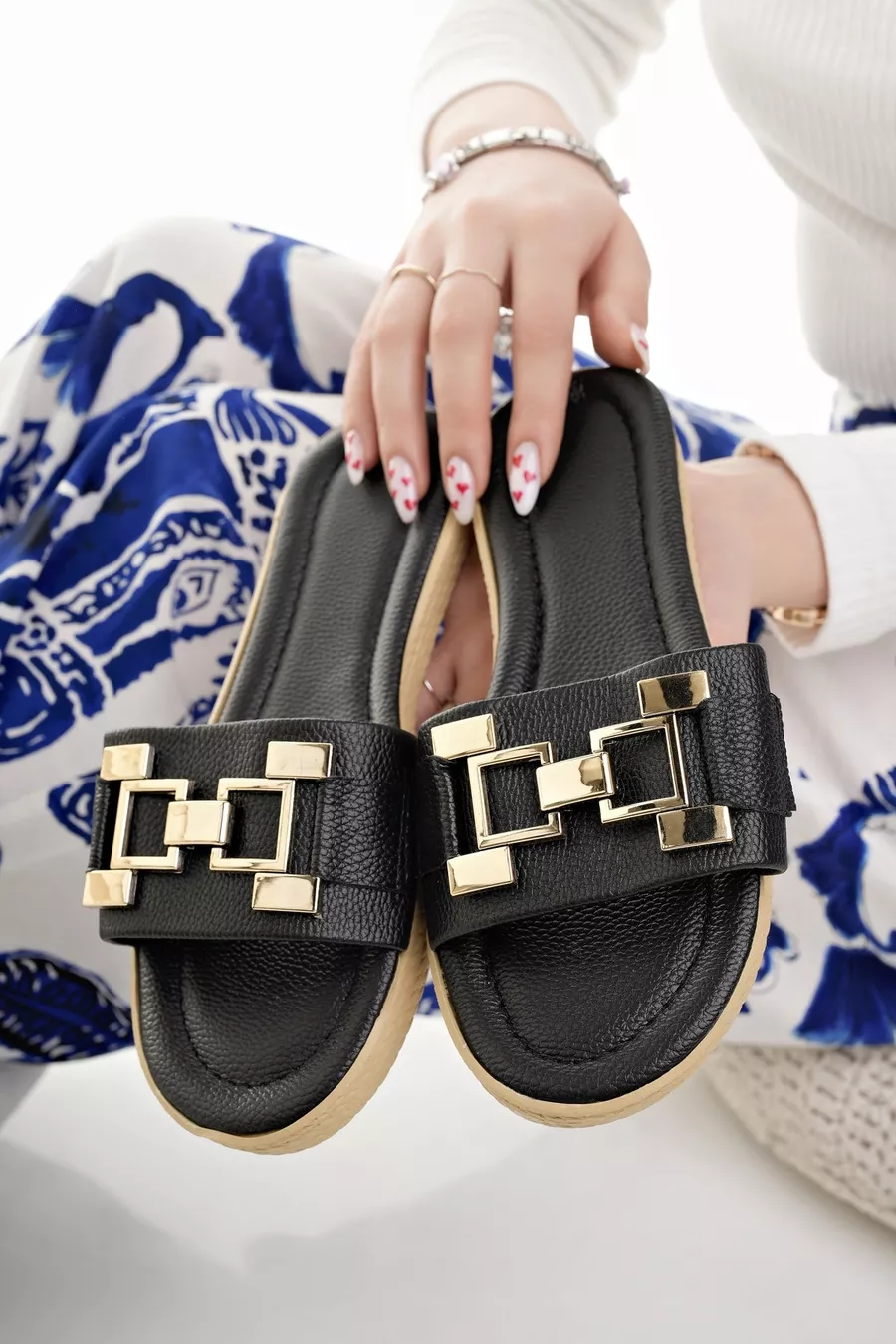 تفاصيل المنتج: جلد صناعي مادة البطانة: جلد صناعي المادة: جلد صناعي مادة الجزء العلوي: جلد صناعي حالة الصندوق: بدون صندوق نوع الكعب: كعب مسطح ارتفاع الكعب: كعب قصير (1-4 سم) اللون: أسود مادة النعل: بلاستيك حراري مادة النعل الداخلي: جلد صناعي تفاصيل الاستدامة: نعم الشخصية: بارد ومريح ميزة إضافية: نعل تقويمي البيئة: كاجوال/يومي تعليمات الغسيل: النوع 4 النقش: سادة نوع القماش: منسوج المجموعة: ملابس منزلية محتوى العبوة: 1 قطعة المنشأ: تركيا الموسم: جميع المواسم المادة الخارجية: جلد صناعي