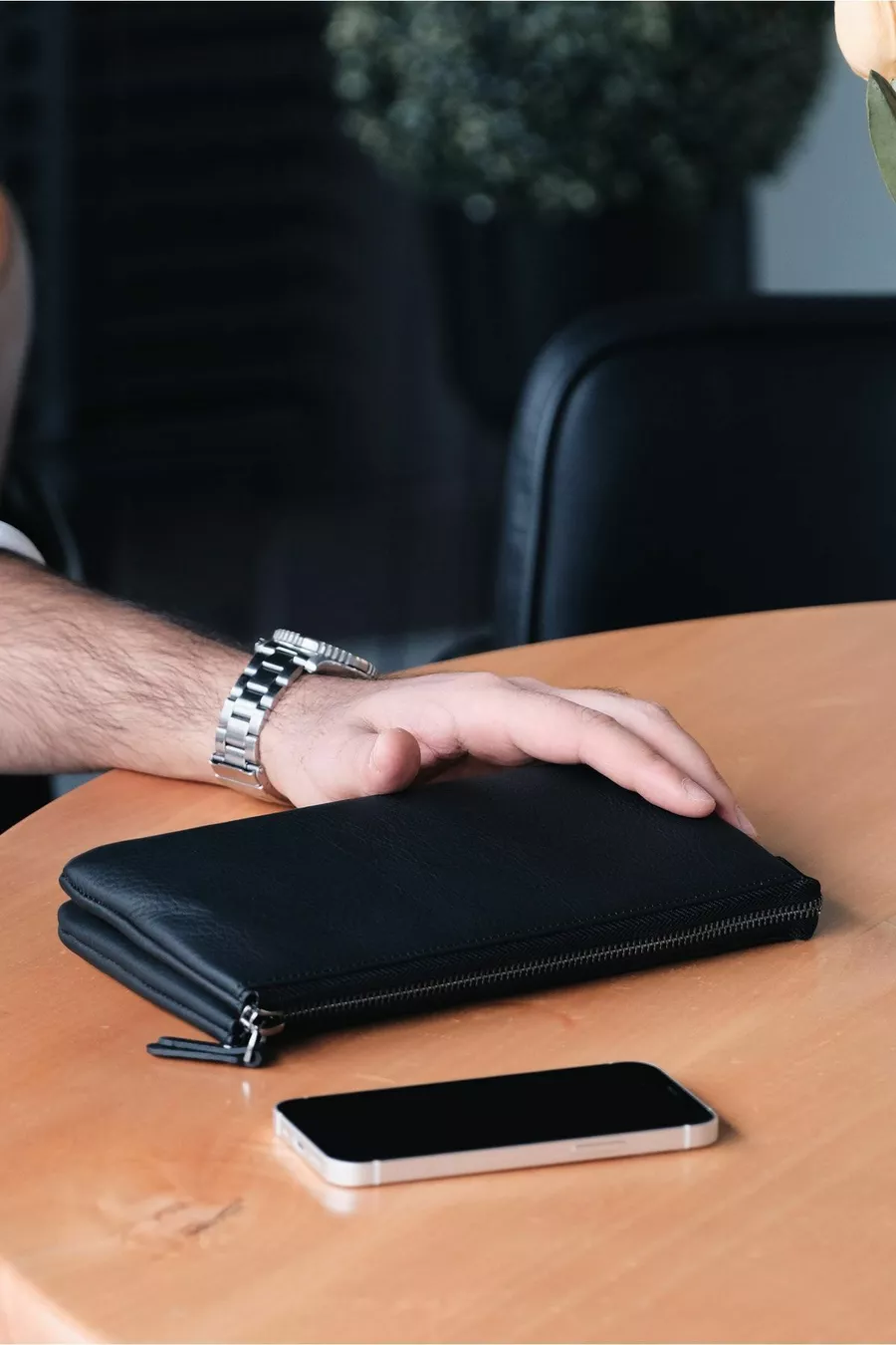 نوع القماش: دينيم الحجم: كبير المادة: جلد طبيعي اللون: أسود تعليمات الغسيل: النوع 4 النقش: سادة جودة الجلد: جلد طبيعي المجموعة: للجنسين السعة: 0-15 لتر محتوى العبوة: فردي
