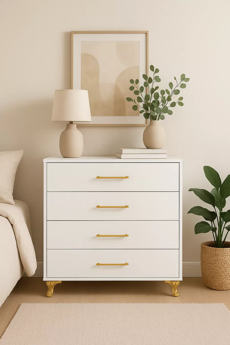 نينّا موبيليا جولد 🌟 خزانة حديثة بأربع أدراج – مساحة تخزين واسعة، تصميم أنيق
