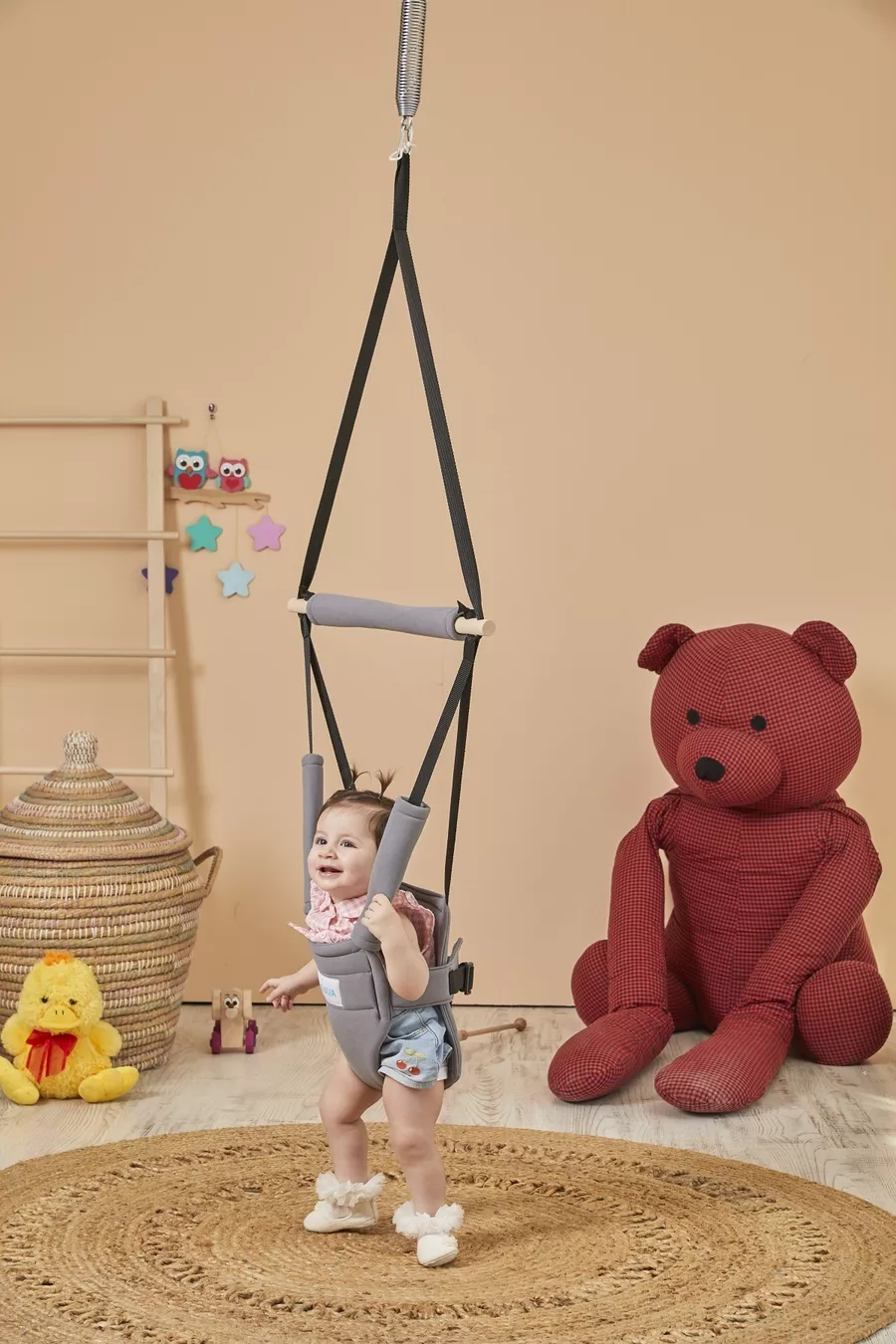 هوبالا زيپزيپ، واقي وجه، كنغر، لعبة مشي للأطفال بنابض للتوازن، خشب طبيعي، رمادي