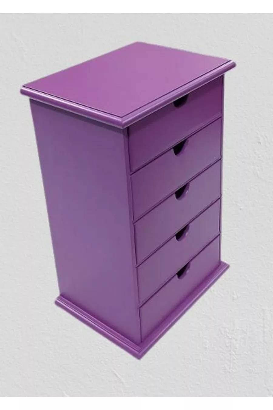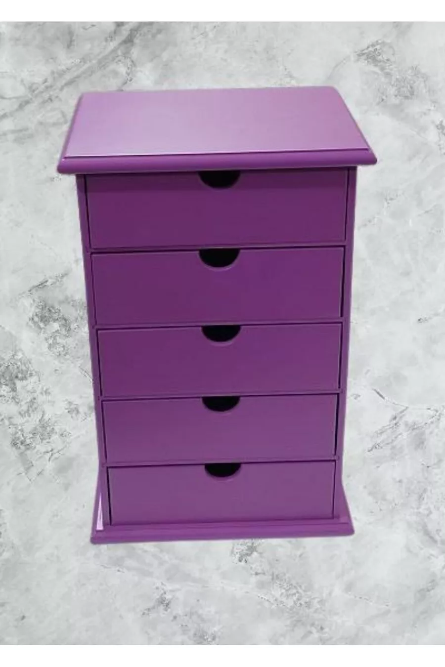 اللون: بنفسجي مدة الضمان: سنتان المادة: خشب الارتفاع: 1 - 20 سم العرض: 26 سم العمق: 17 سم عدد الأدراج: 5 ميزة المنتج: يحتوي على أدراج الطراز: حديث الموضوع / الطراز: حديث المنشأ: تركيا
