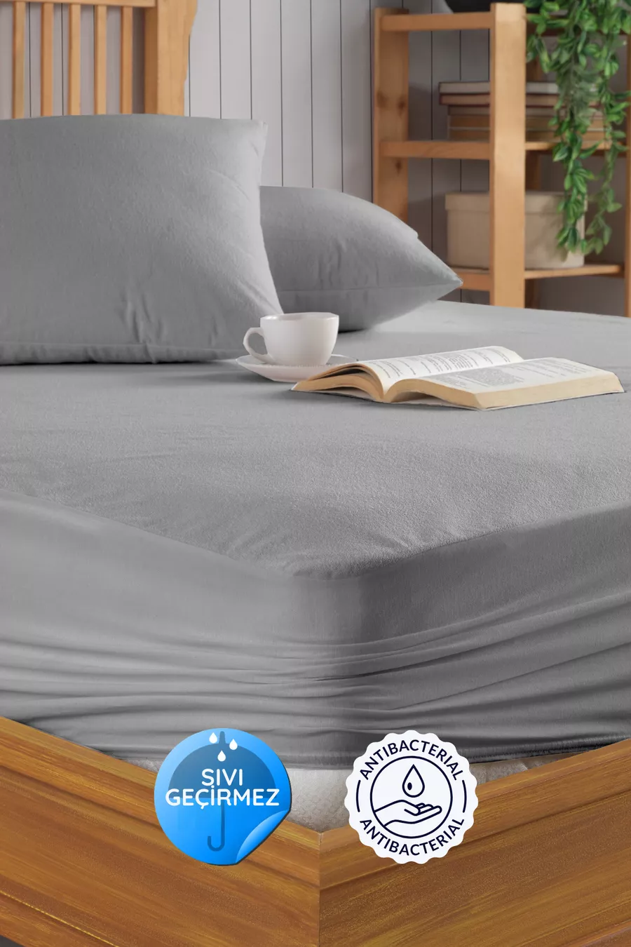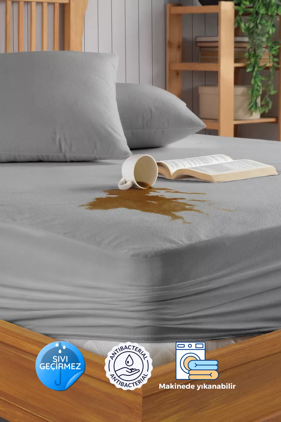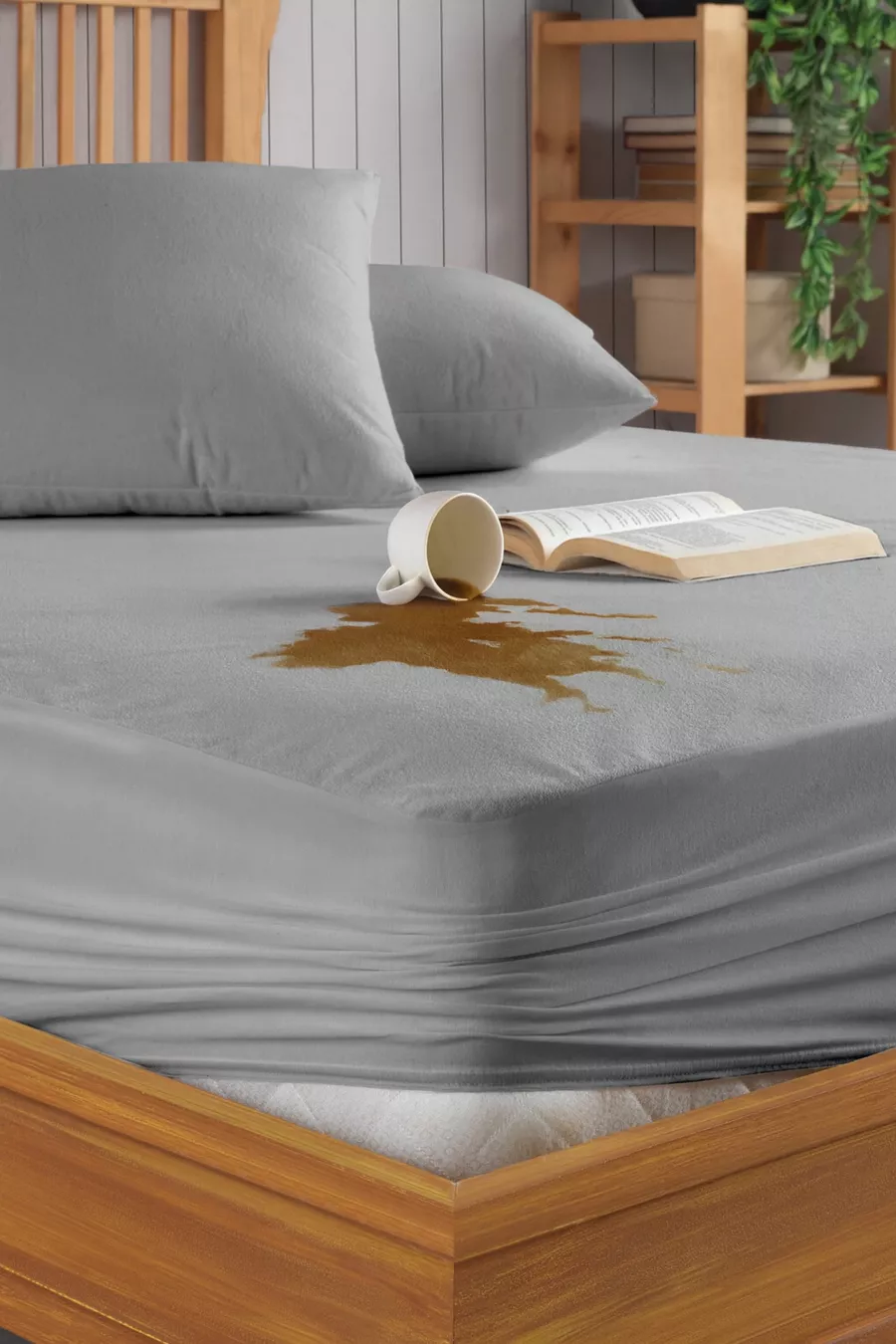 واقي سرير مقاوم للماء بكامل الحواف بلون رمادي، صغير الحجم، مناسب للأطفال، فردي ومزدوج