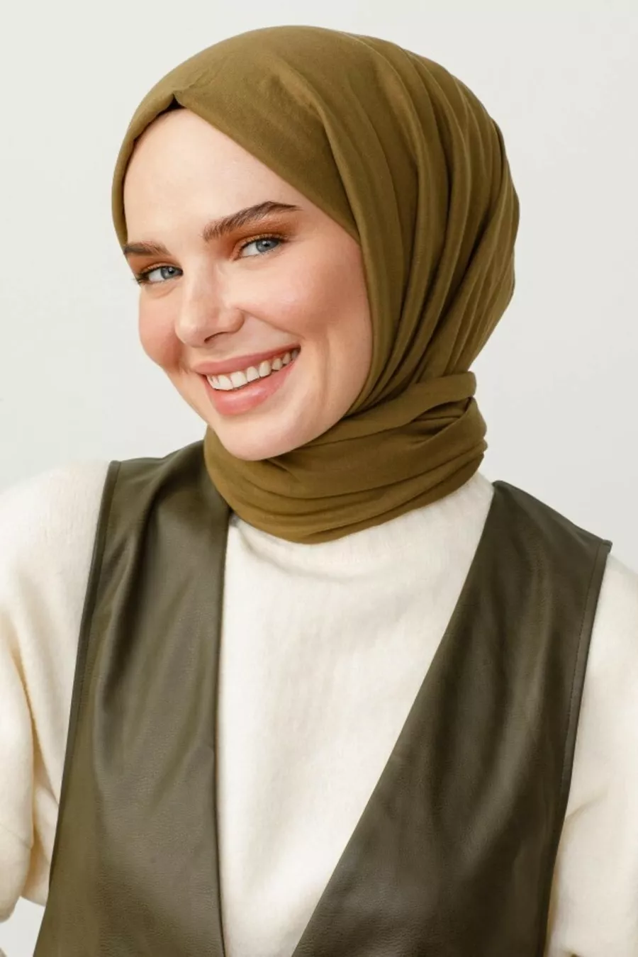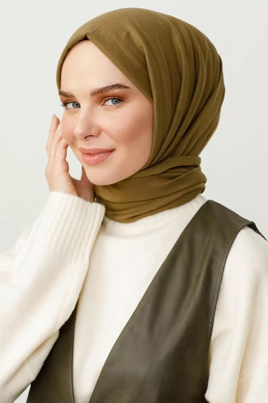 وشاح قطن كرش بلون أخضر زيتي