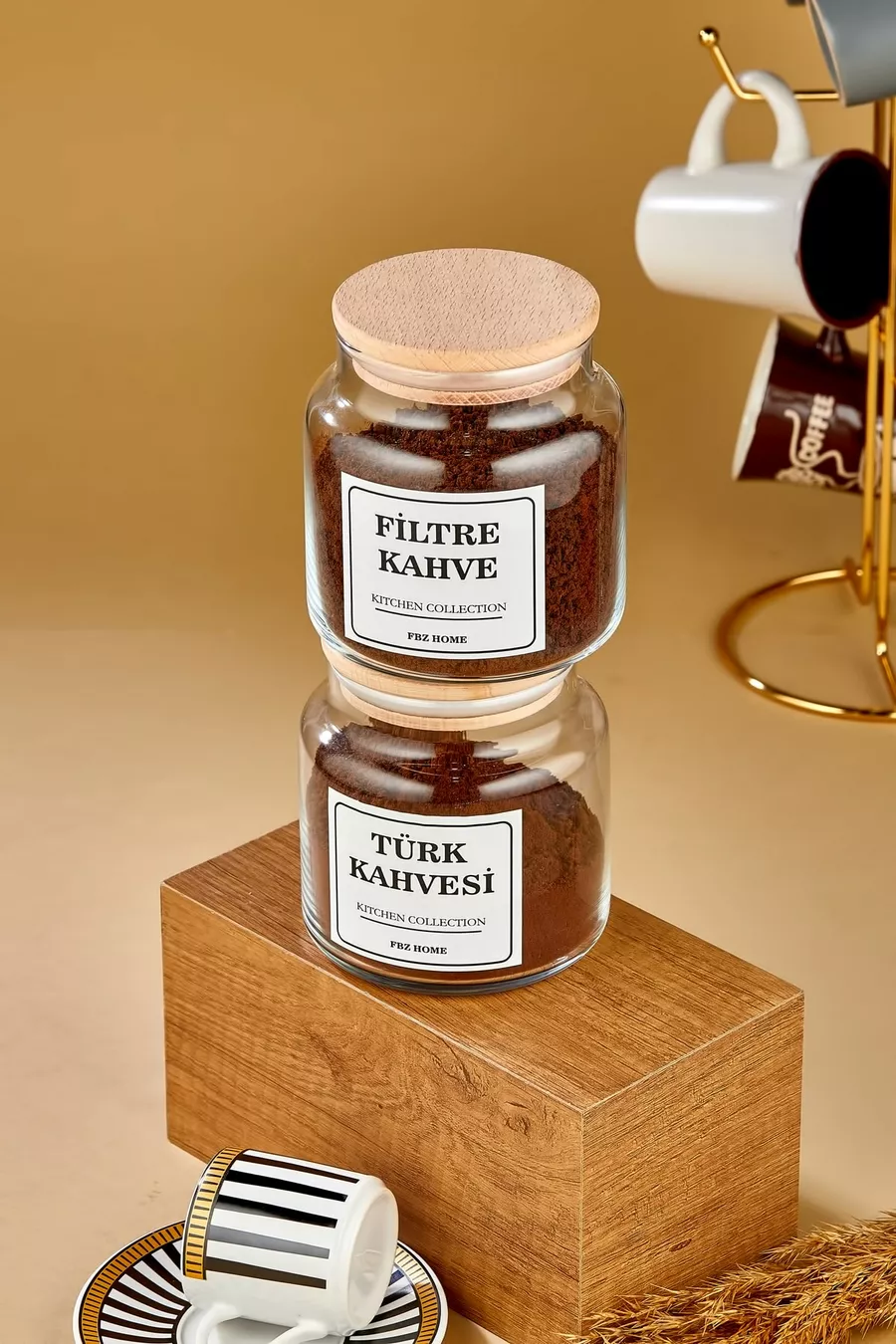 وعاء لتخزين القهوة على شكل مرشح و القهوة التركية بغطاء خشبي مزدوج زجاجي سعة مل