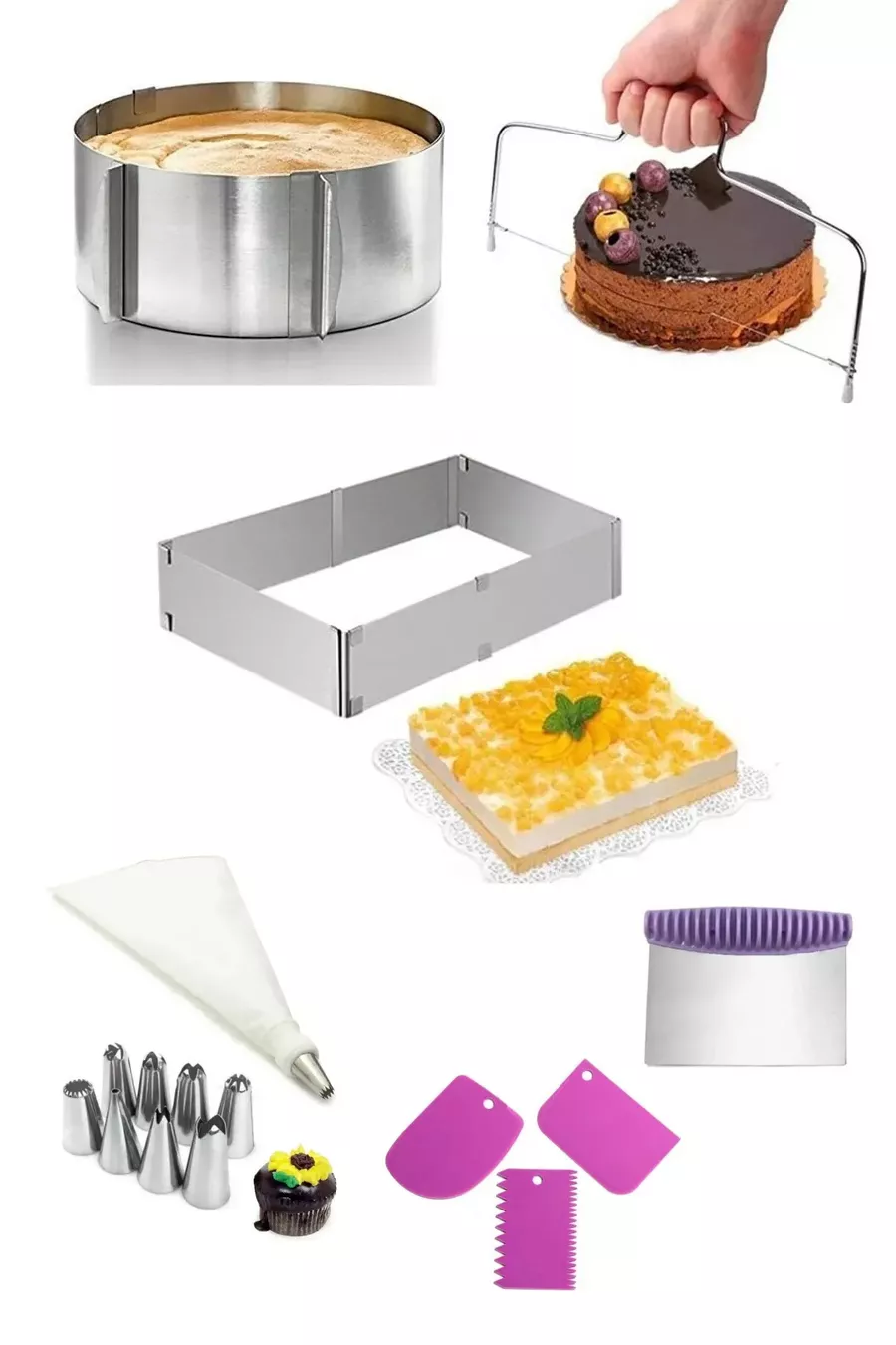 8 قطعة قالب كيك دائري من الفولاذ المقاوم للصدأ، قالب كيك مربع ومستطيل