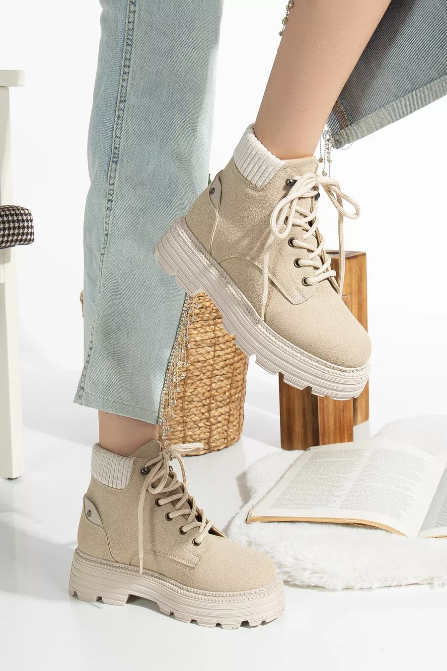Cess كريم القط الدانتيل متابعة أحذية نسائية مفصلة