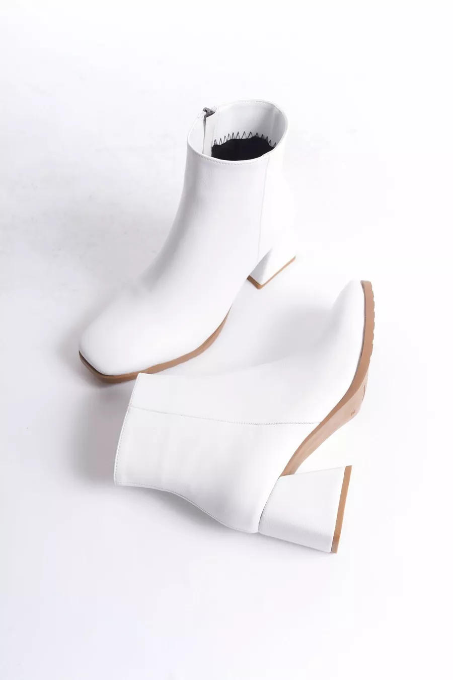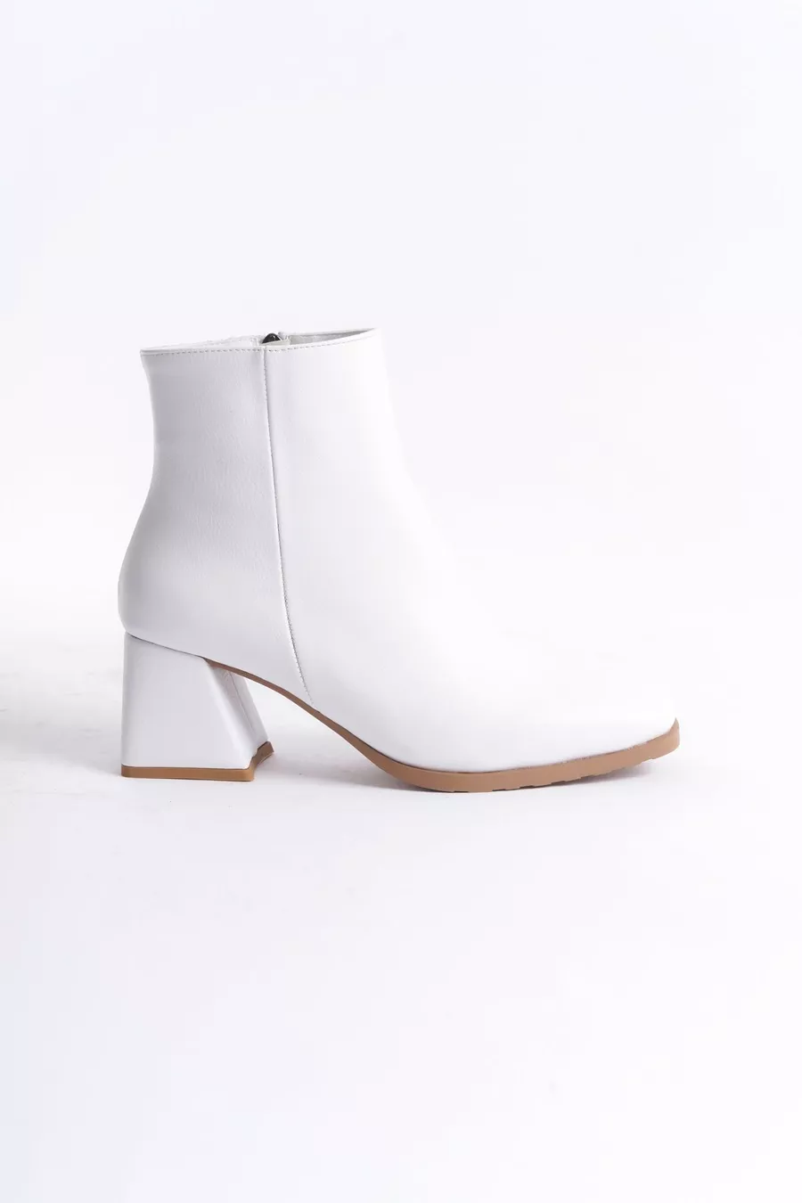 Ezstar الأبيض غير لامع حادة اصبع القدم الكعب السميك أحذية عارضة