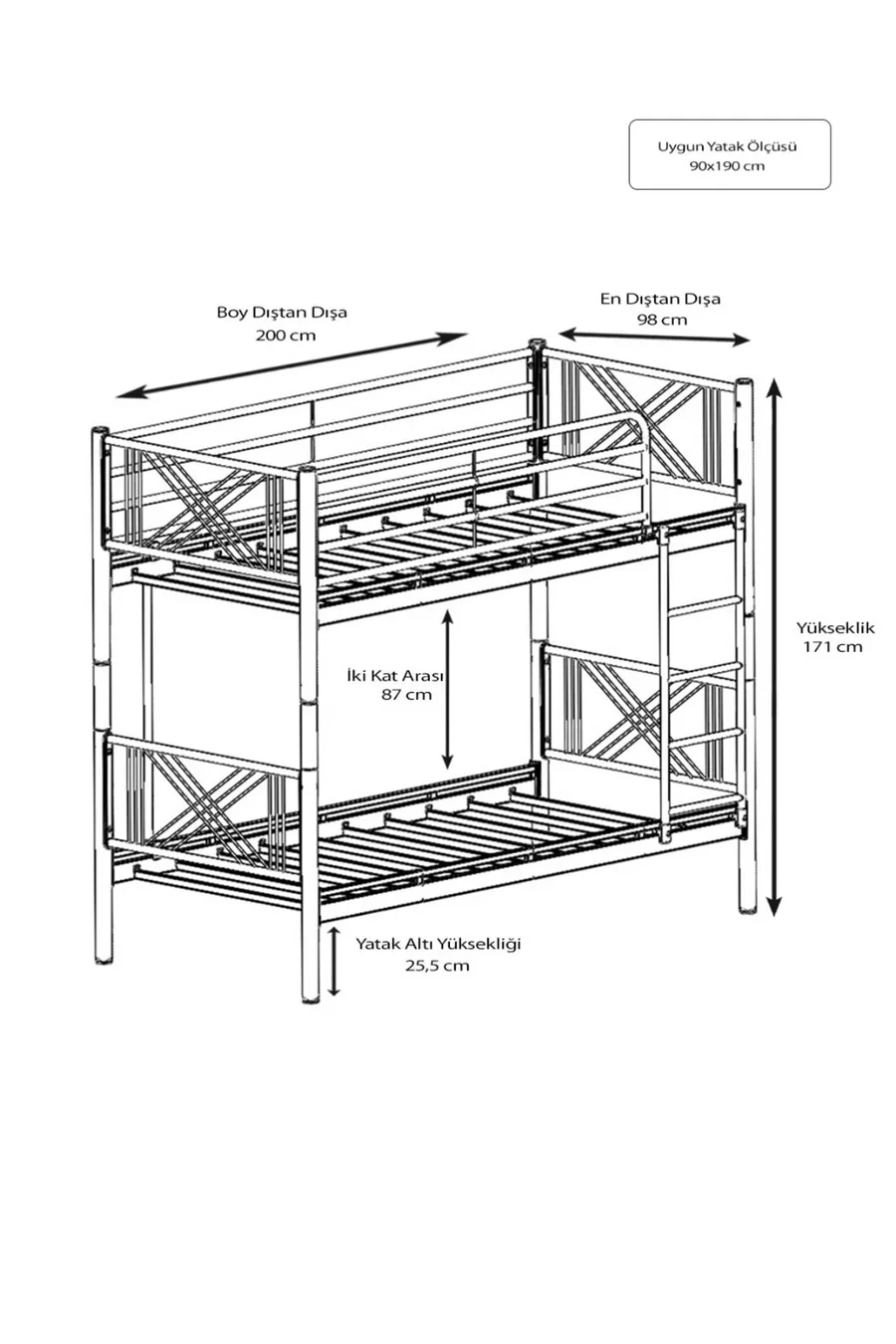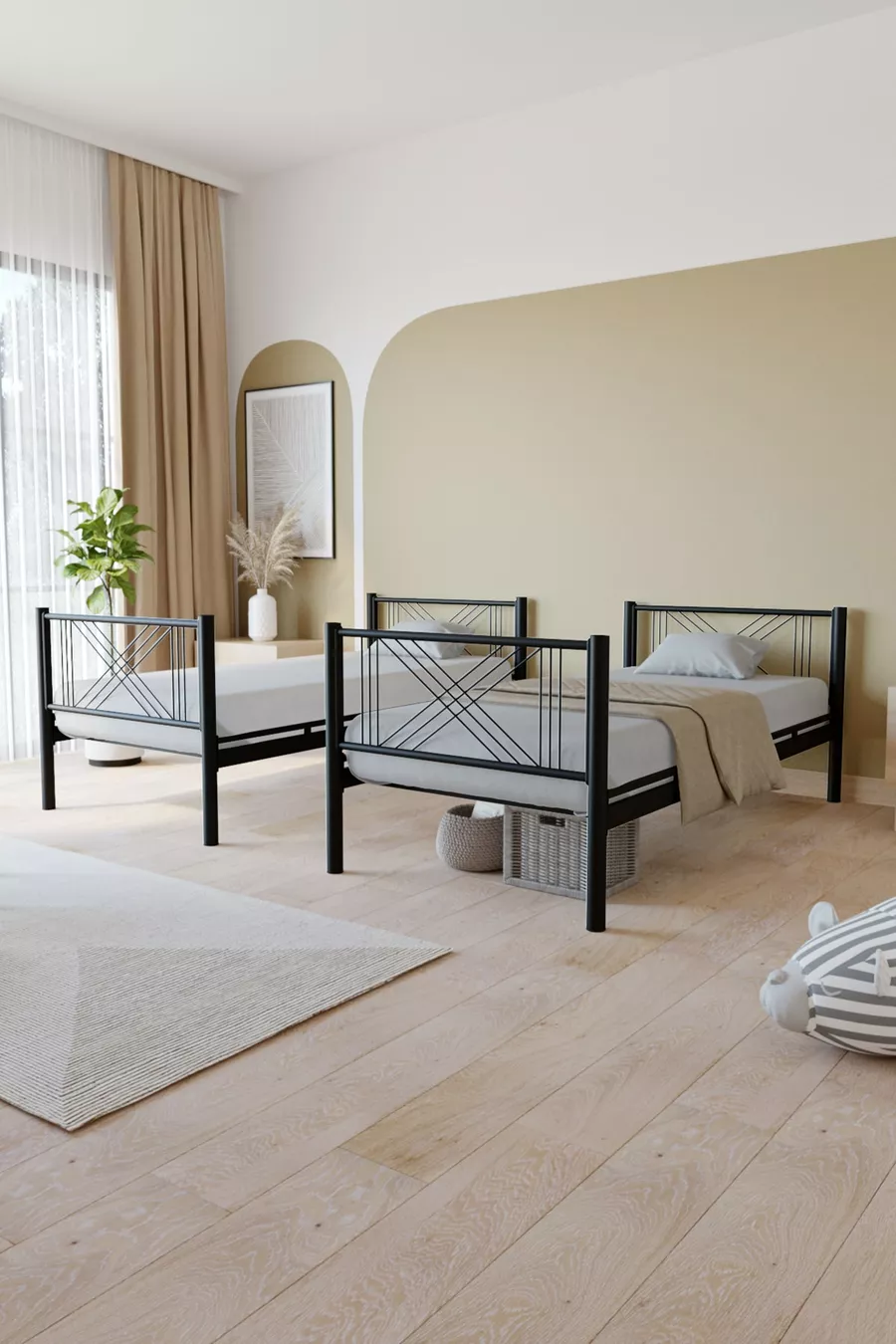 Mix Premium Metal Ranza Yatak Uyumlu Siyah Ayrılabilir Ranza Karyola