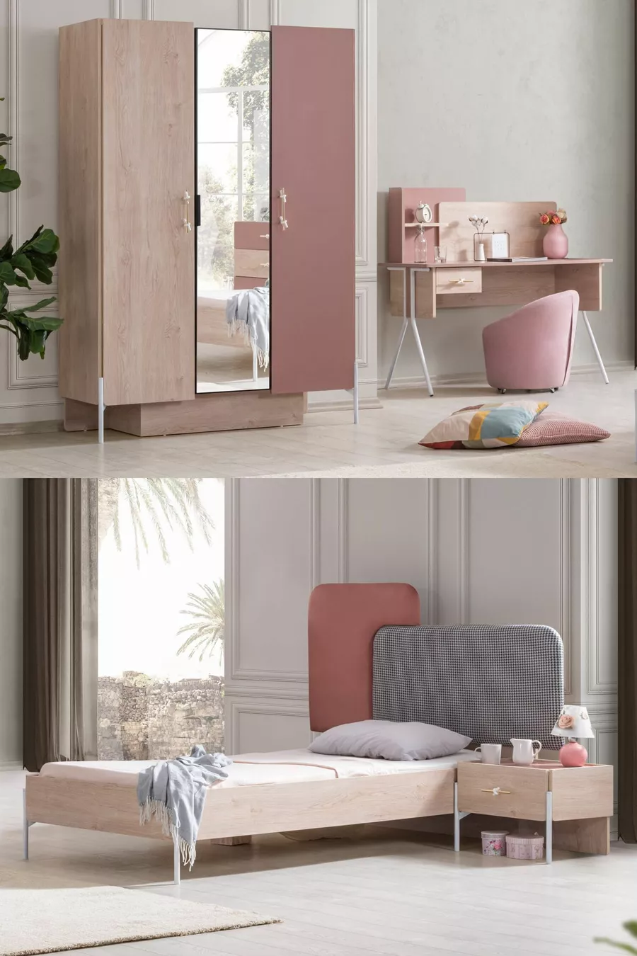 Rosetta Genç Odası - 3 Kapılı Dolap, Karyola, Komodin, Masa