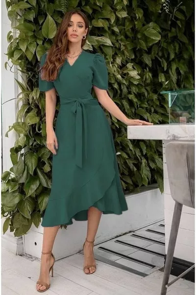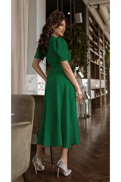 فستان نسائي من الساتان متوسط الطول مزدوج الصدر