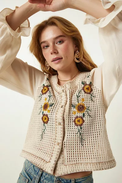 Дамска бяла камзола от плат с цип Изправена яка Кроп блуза