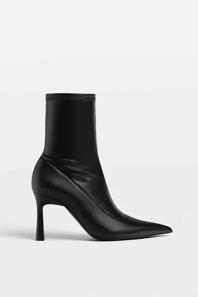 Черни кожени ботуши на ток