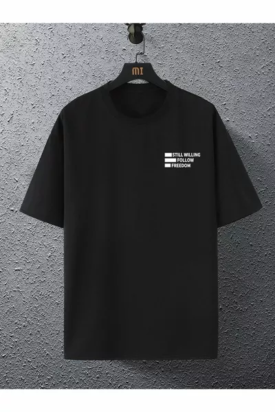 Унисекс черна тениска с кръгло деколте памучна оверсайз тениска за гаджето