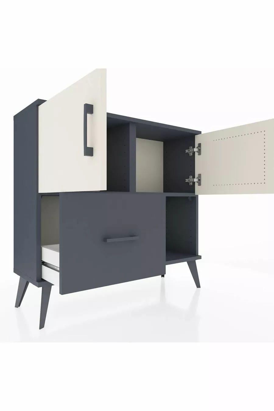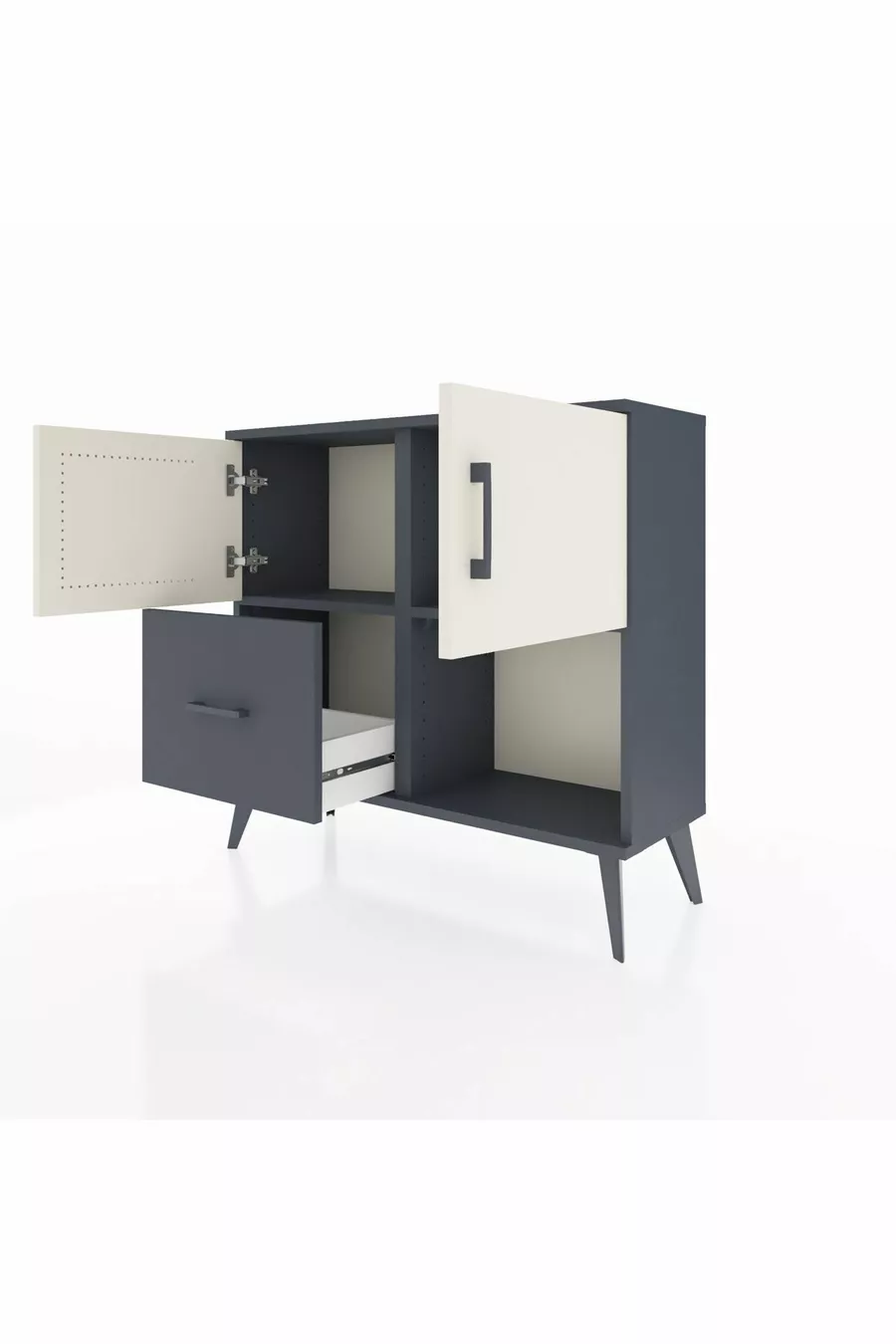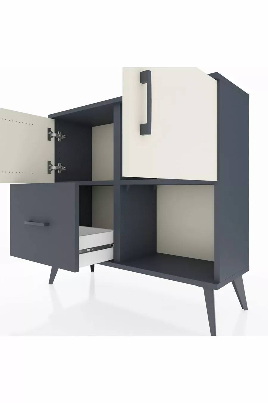 Аргес Скрин 2 Рафтове с 1 Чекмедже и 2 Врати Антрацит-Гълъбово Сиво/Антрацит