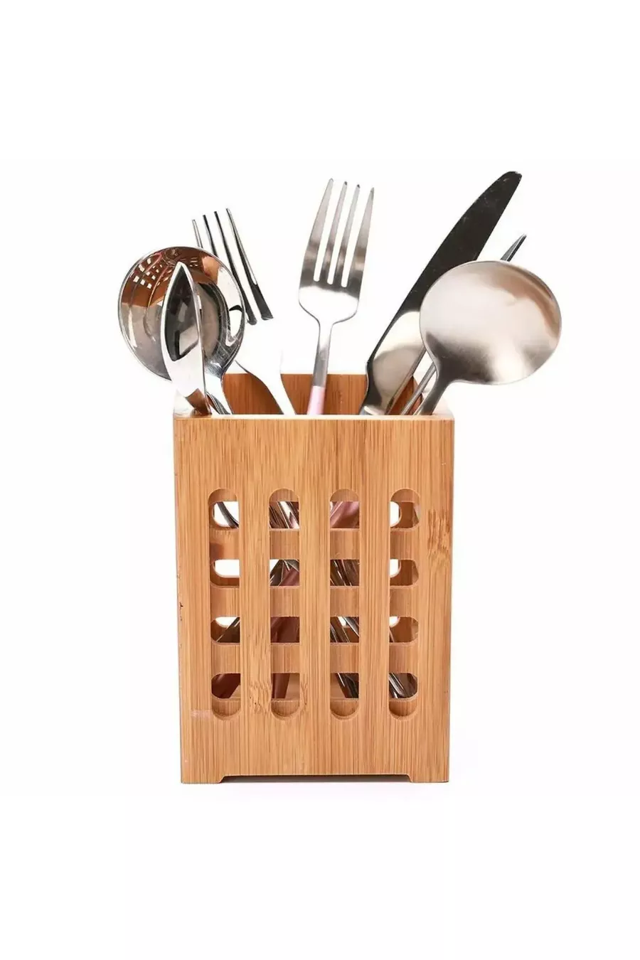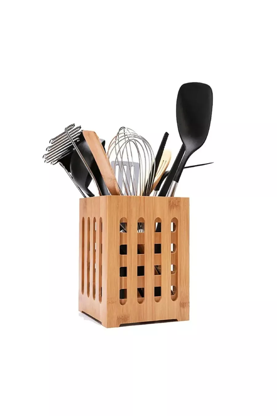 Бамбукова поставка за лъжици, декоративна вертикална поставка за лъжици за плота, бамбуков кухненски организатор