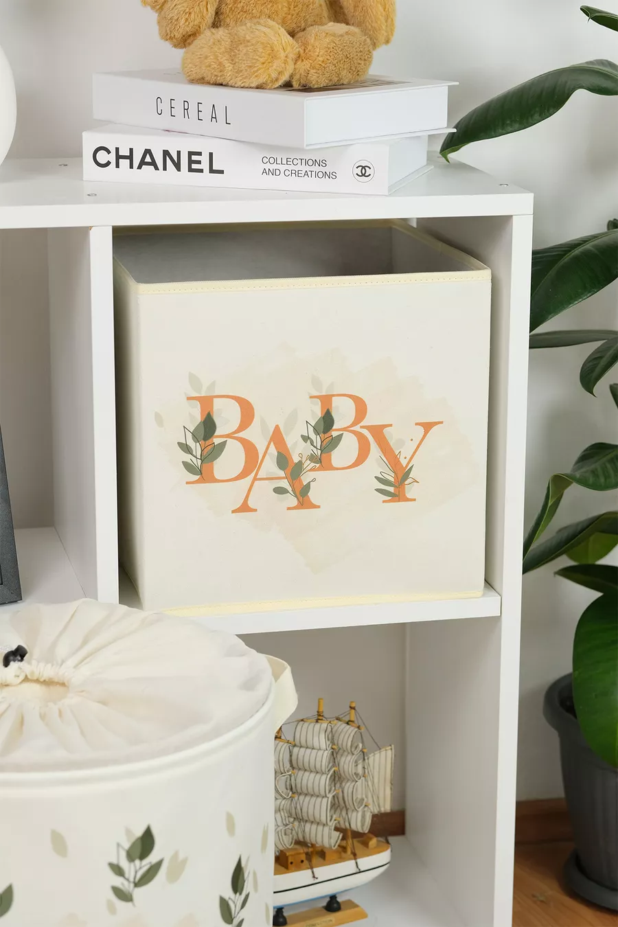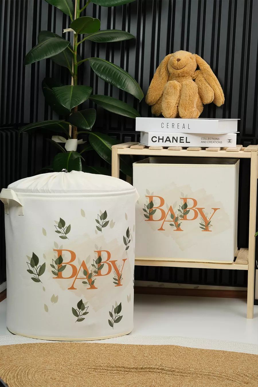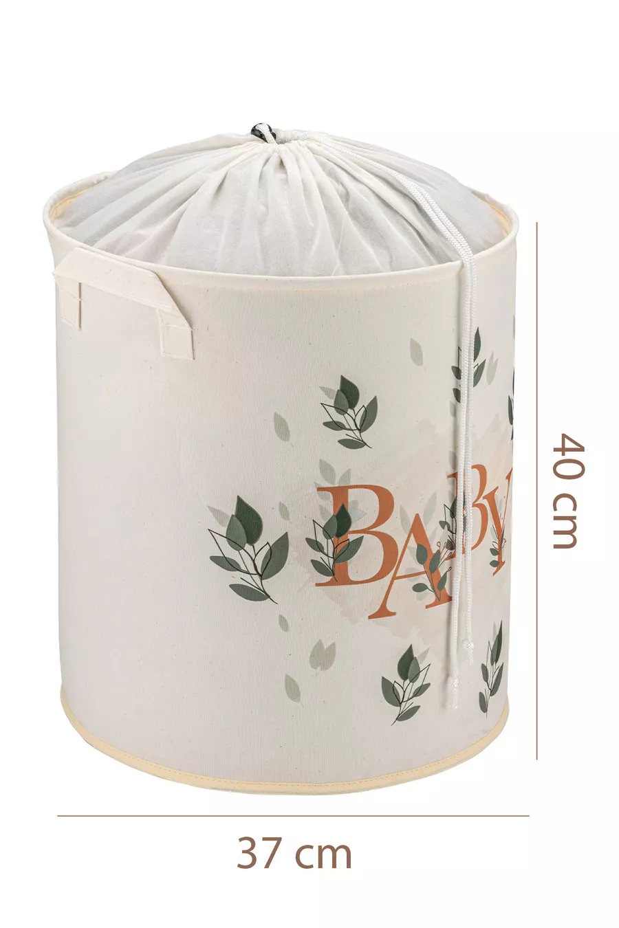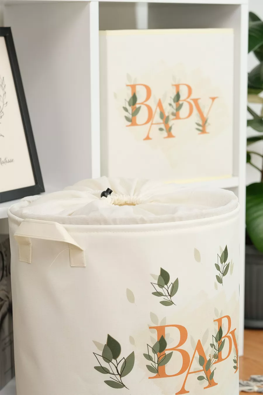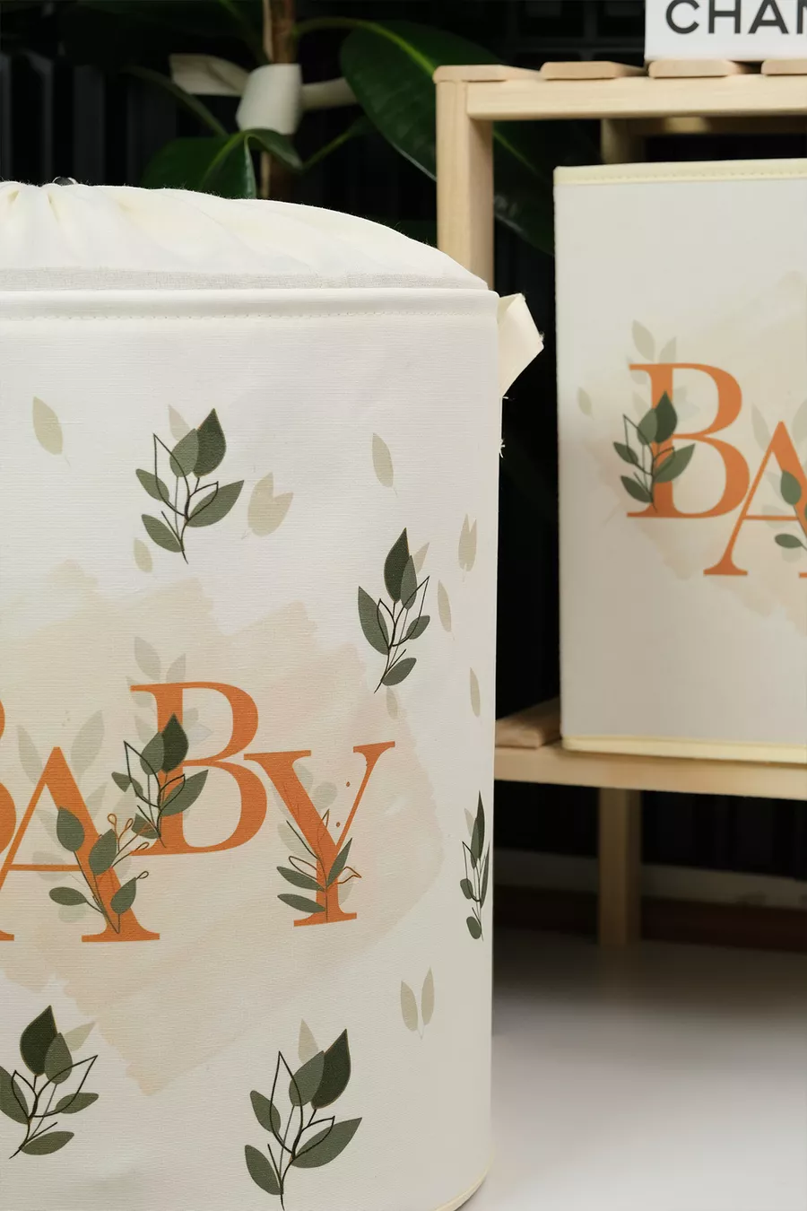 Бебешка цилиндрична кошница с текст и стягащ се отвор и кутия без капак