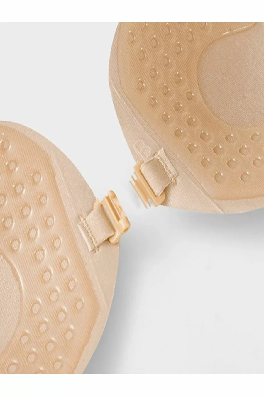 Безрамно официално бежово бюстие с повдигащ ефект за официални рокли, сватбени рокли и други облекла, невидим с лепящи се чашки