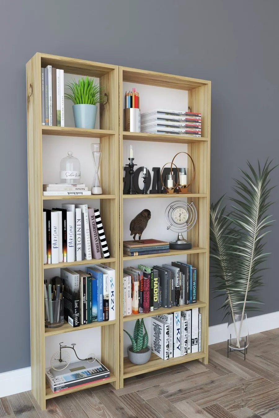 Тип: Класически Материал: Дърво Цвят: Бежов Височина: 169 см Ширина: 94 см Дълбочина: 20 см Брой рафтове: 10 Материал на корпуса: ПДЧ Стил: Скандинавски Тема / Стил: Класически