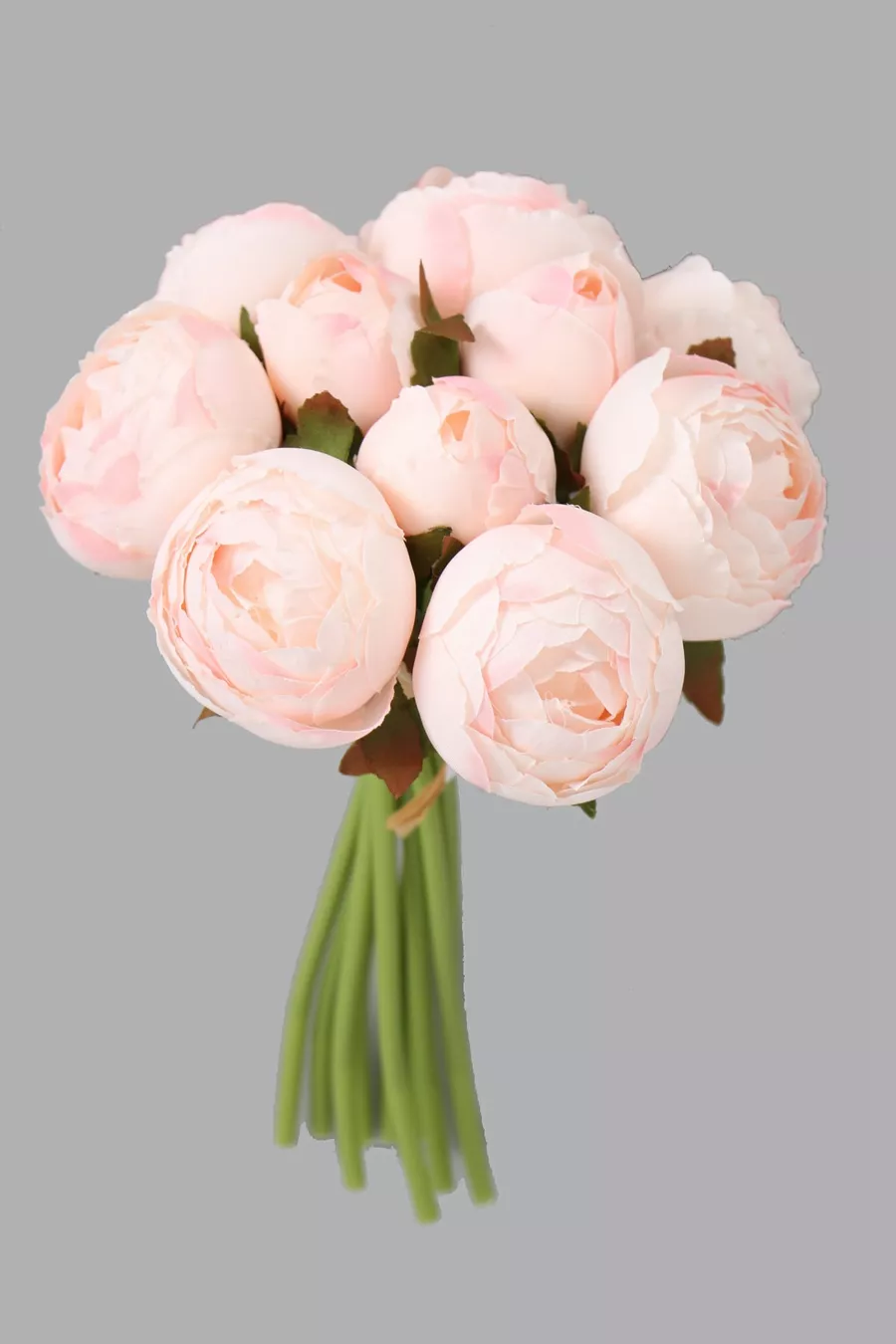 Букет от 9 висококачествени божури и рози в пудрозно розово