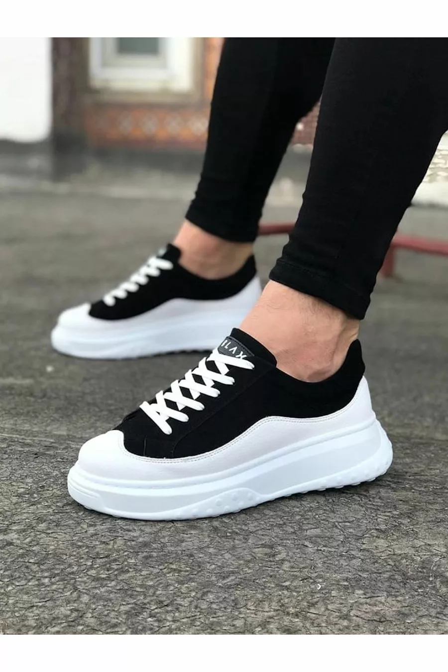Връзки Високо/дебела ортопедична подметка Мъжки спортни обувки за маратонки Bt Черен/бял