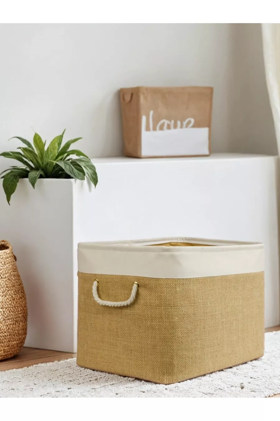 Голяма сламена кошница за пране за гардероб, детска стая, играчки, сгъваема органайзер за съхранение