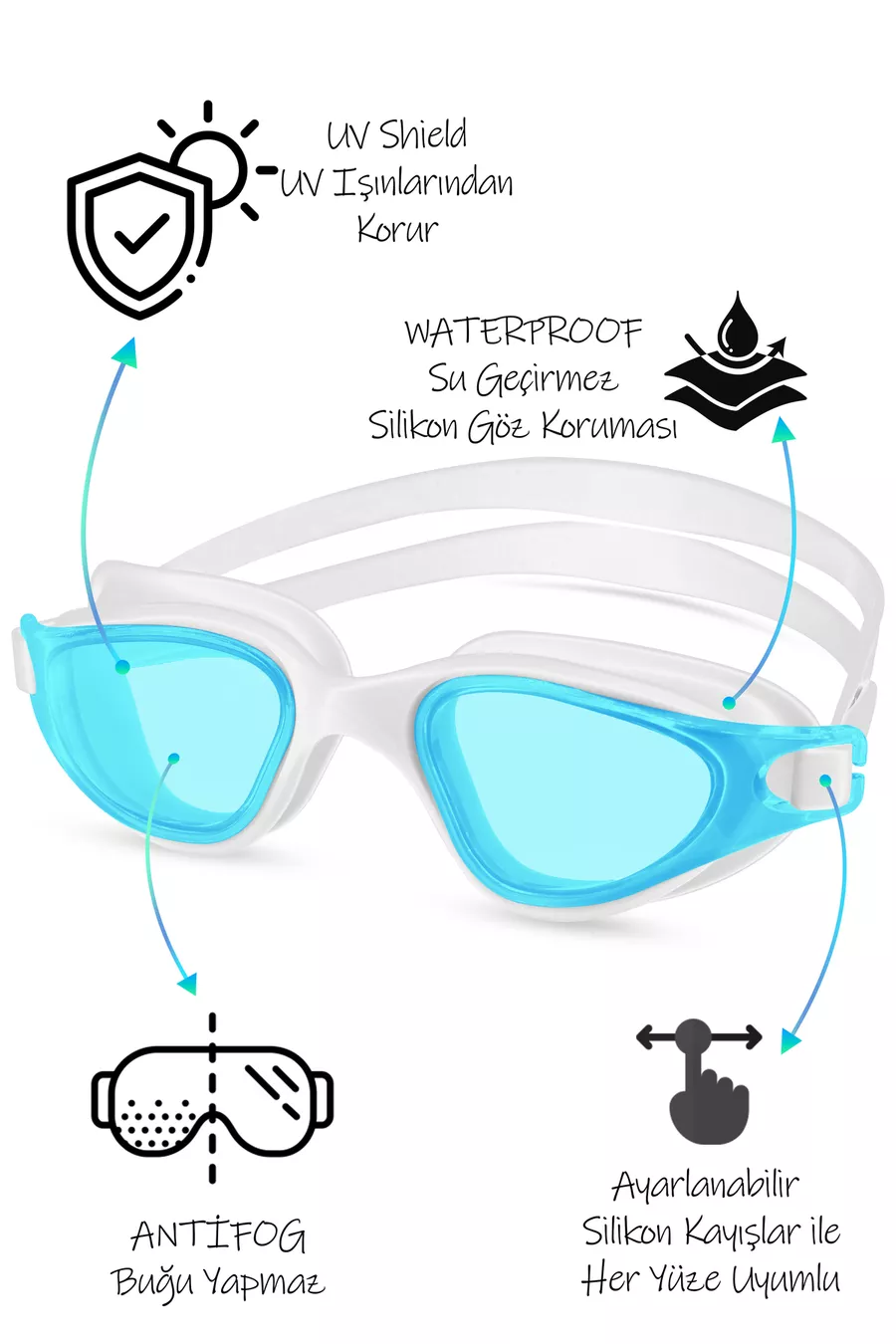 Голямо мъжко професионално силиконово плувно очила за възрастни, не се замъгляват и са водоустойчиви, тюркоаз