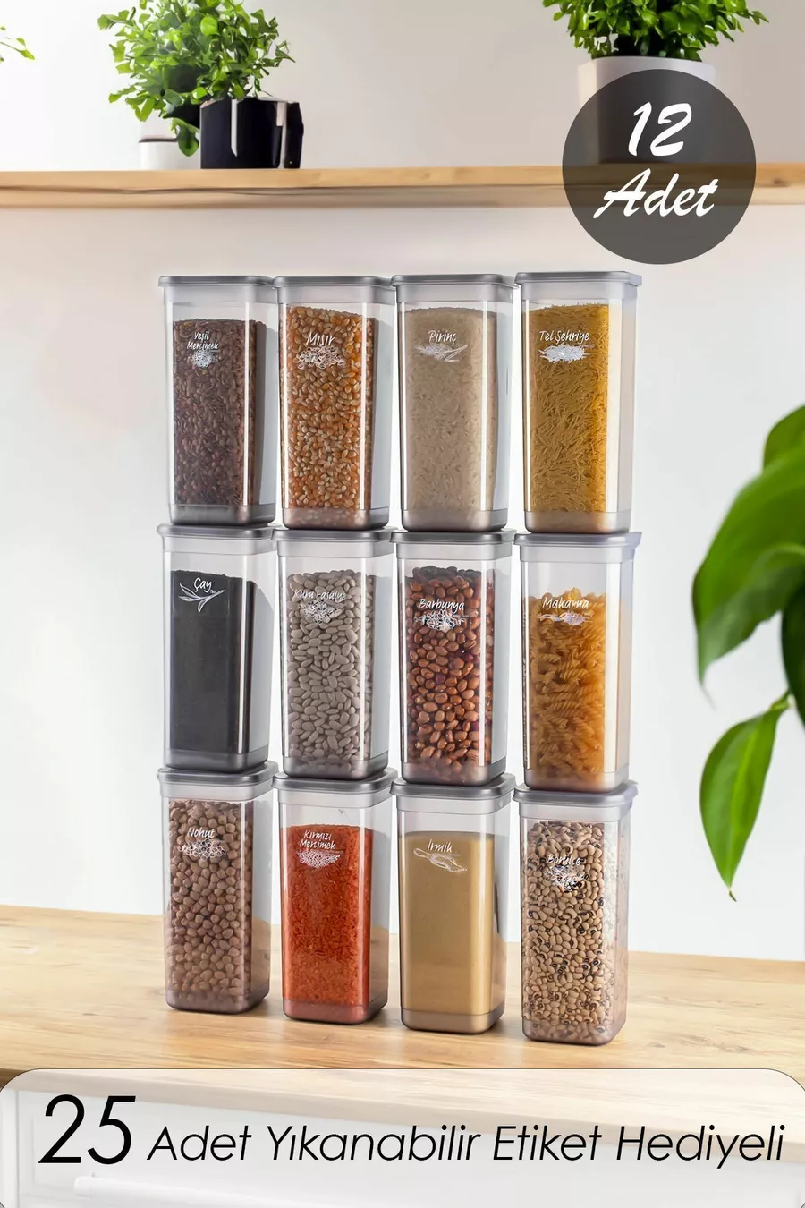 -гр Сет за съхранение на брашно, зърнени и бобови продукти с етикет Li, 1 л - Сив