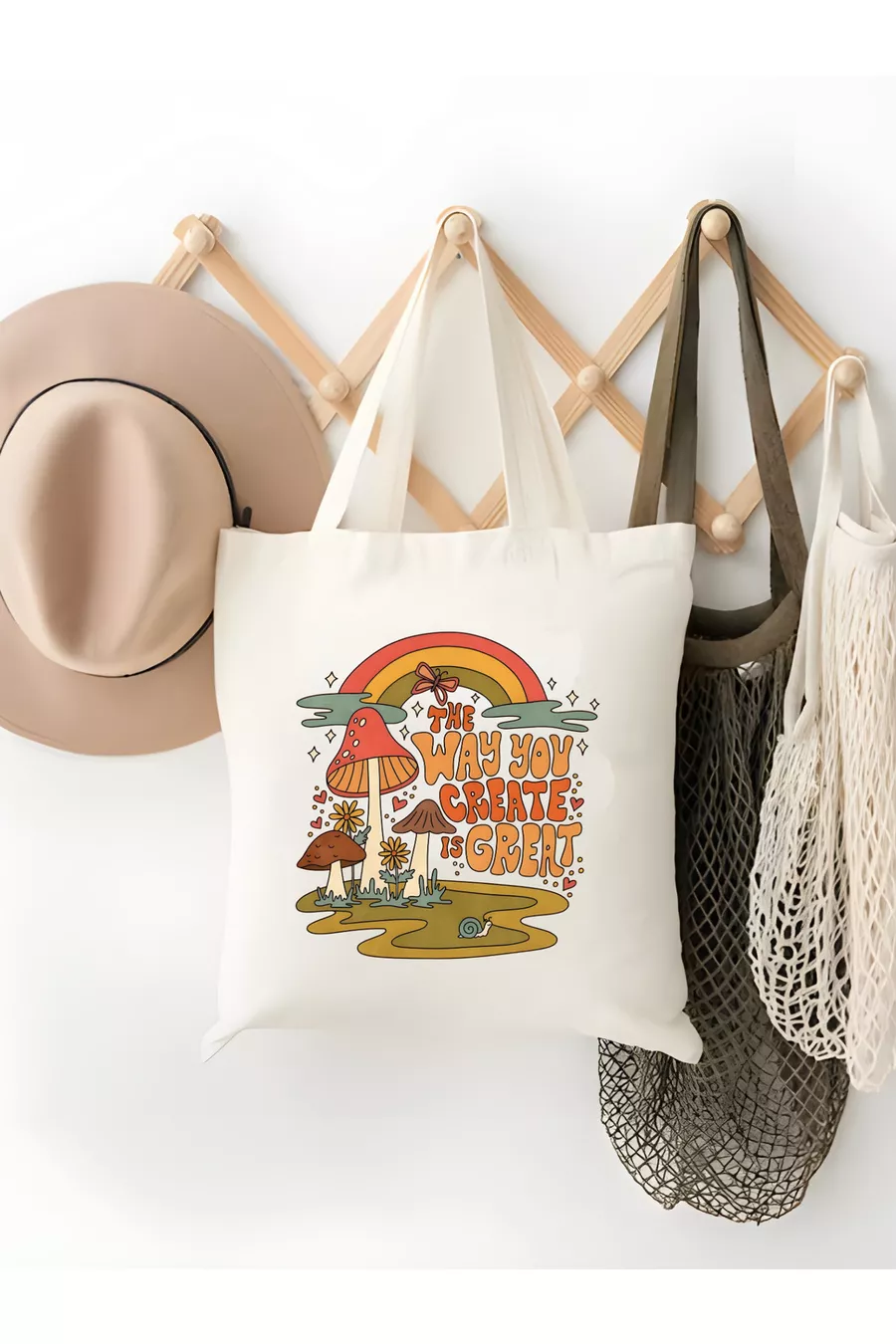 Материал: Памук Качество на кожата: Част от материала не е налична Цвят: Бежов Състав на материала: 100% памук Среда: Ежедневно/Кежуъл Инструкции за пране: Тип 3 Дизайн: С щампа Тип плат: Тъкан Колекция: Дизайн Детайли за устойчивост: Рециклиране + Органично Капацитет: 8-10 л Съдържание на комплекта: 1 бр. Възраст: Всички възрастови групи