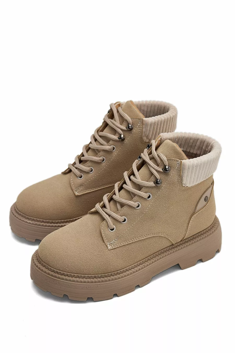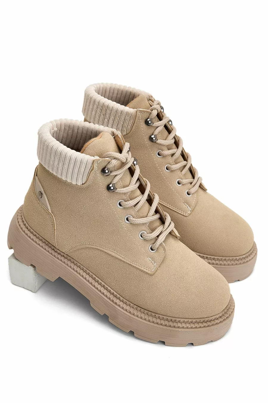 Дамски бежови велурени дамски ежедневни обувки с връзки