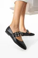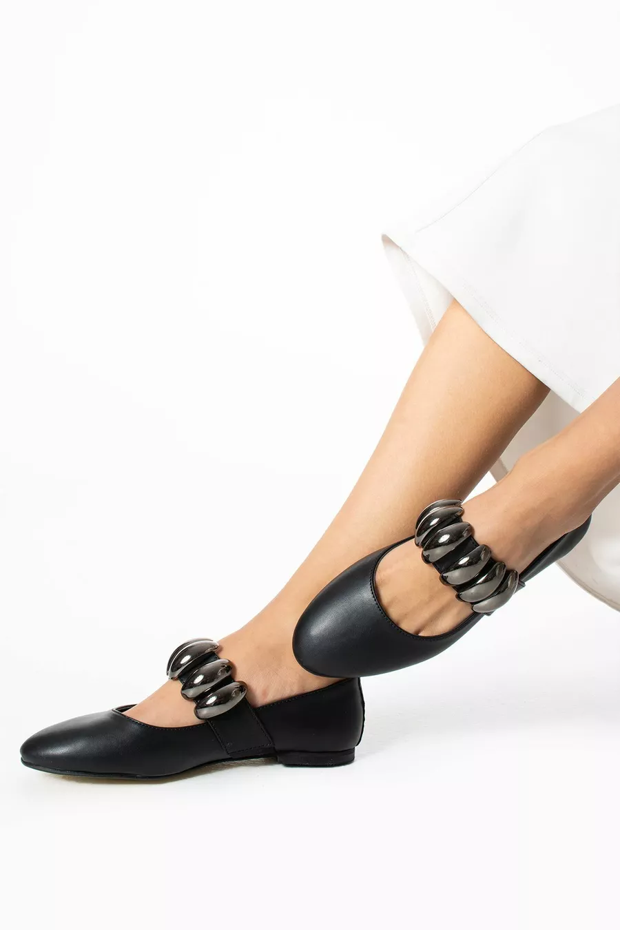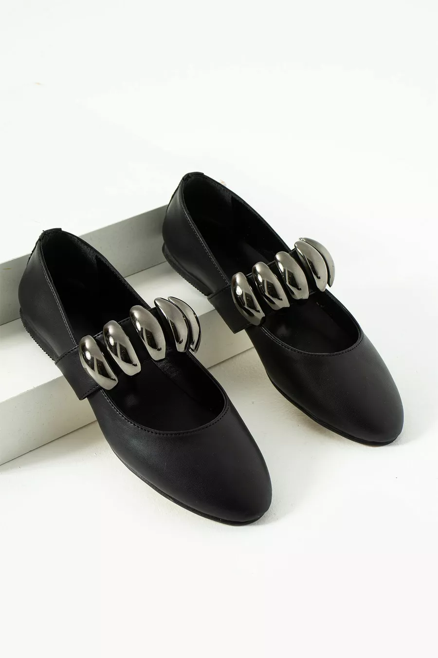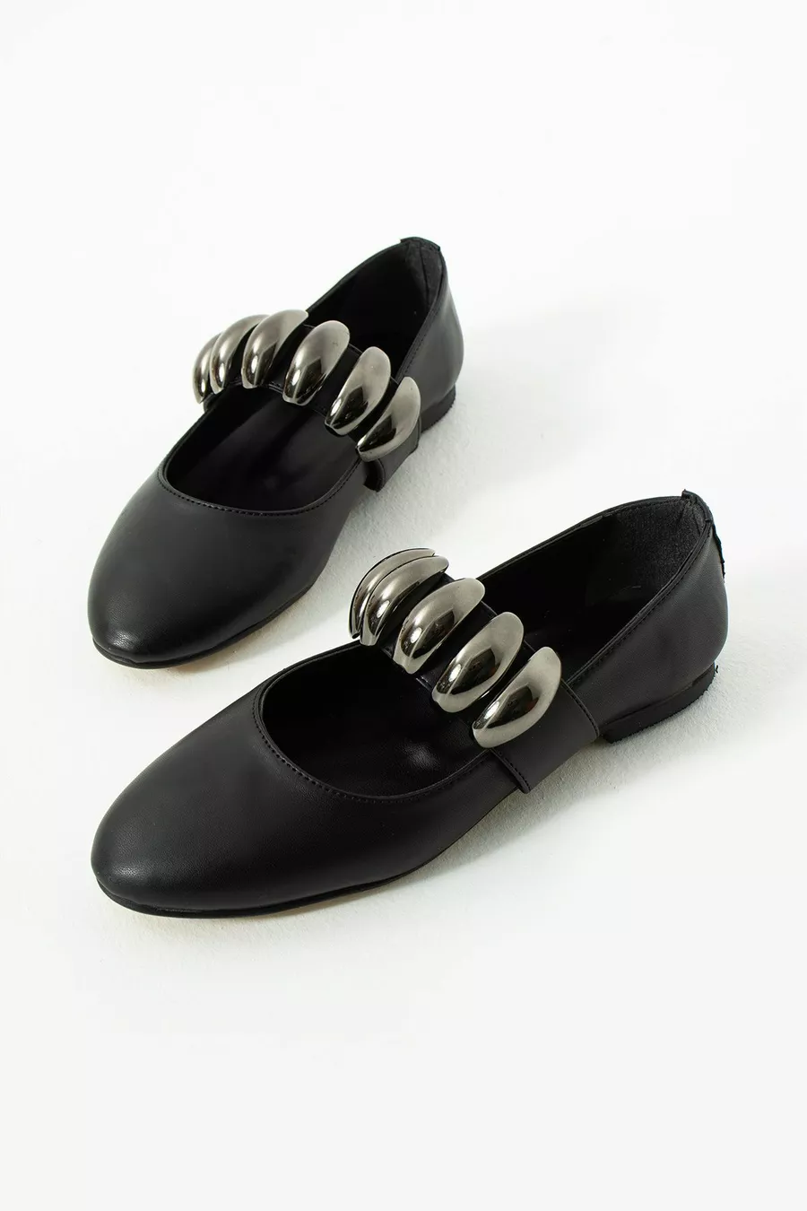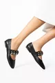 Дамски ежедневни метални катарами Oval Toe Single Band Black Skin Ballet Flat Allstar