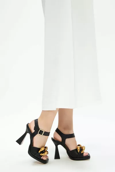 Дамски сандали от естествена кожа на ток Bn Ayk