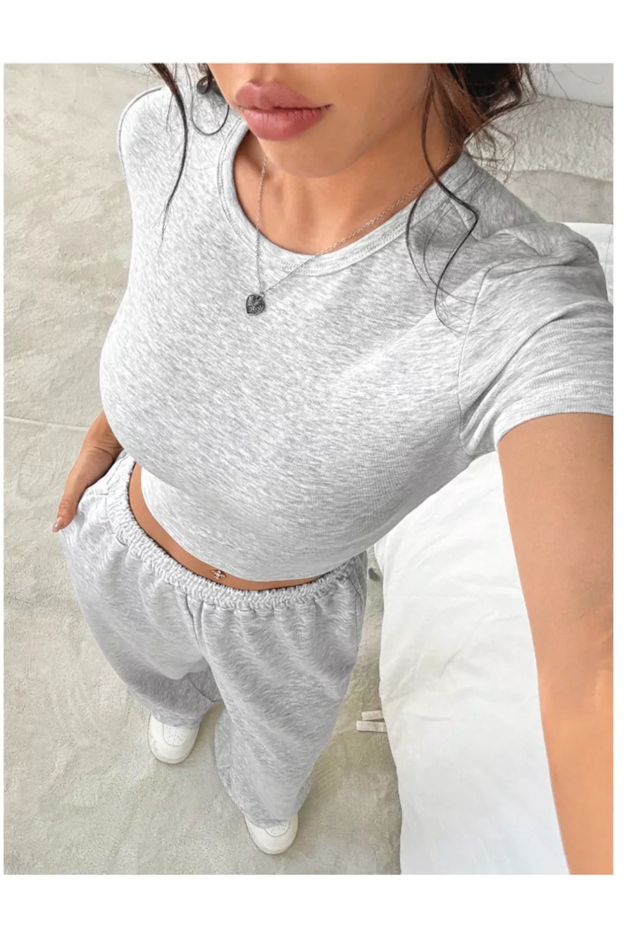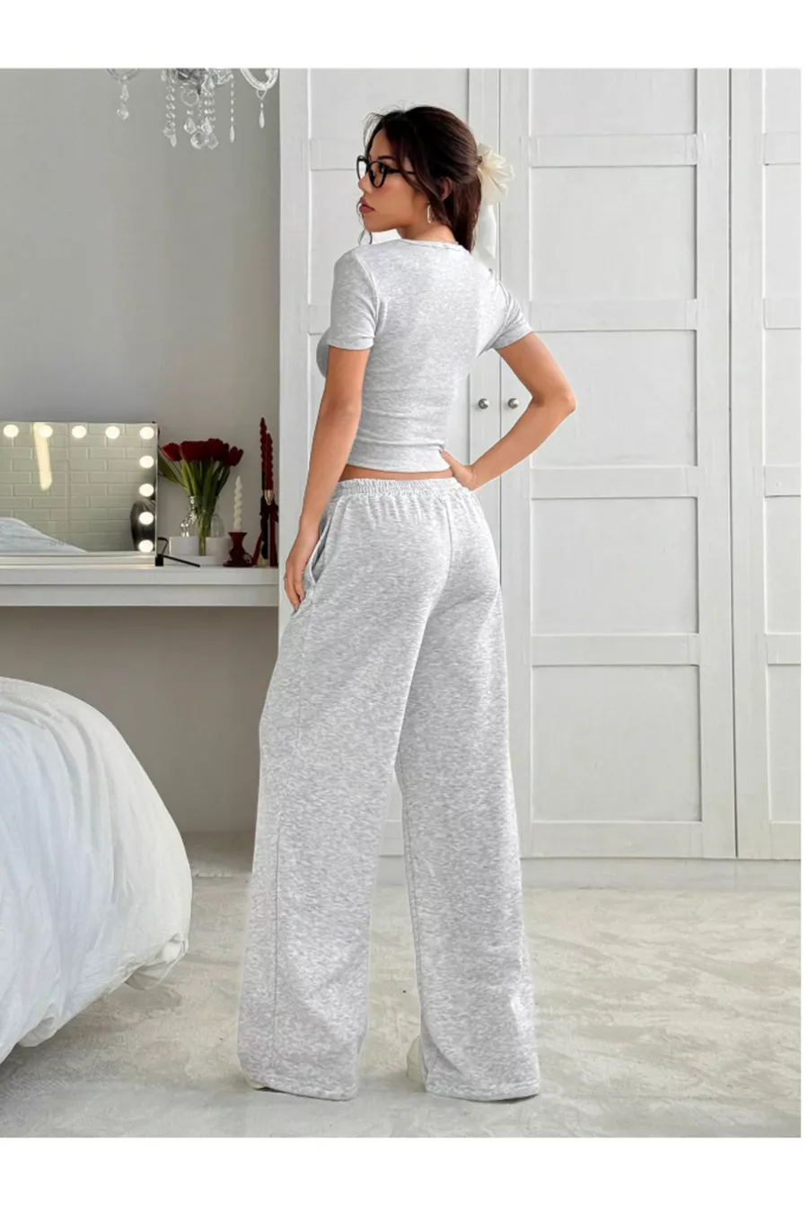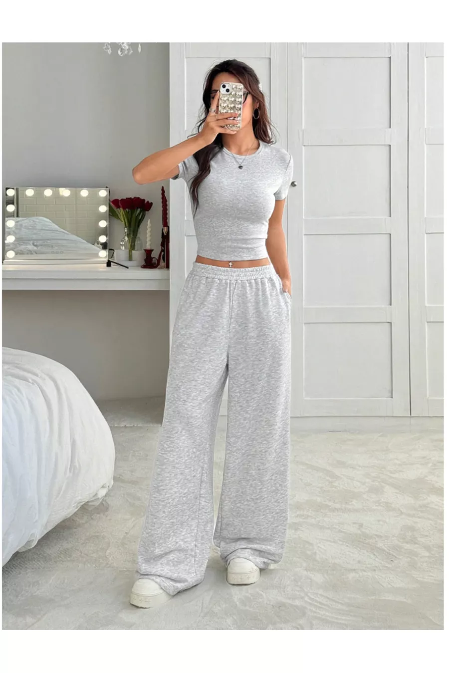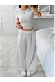 Дамски сив широк спортен панталон голям размер, качествен, свободен, еластичен и удобен, долнище за анцуг