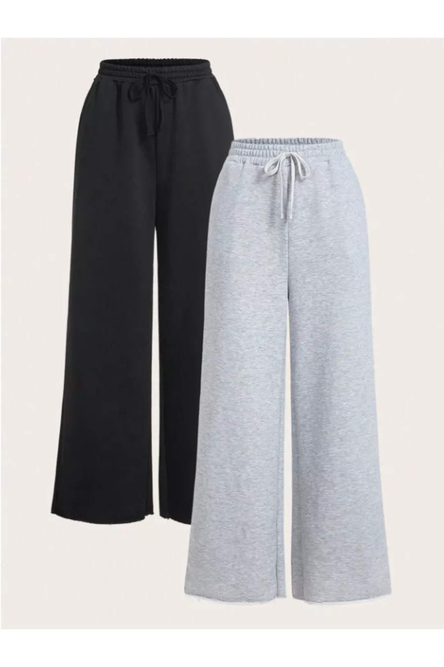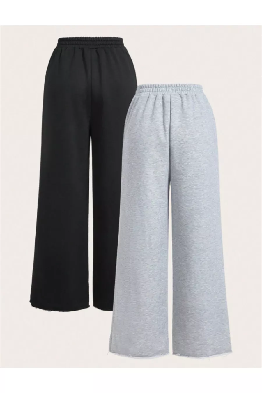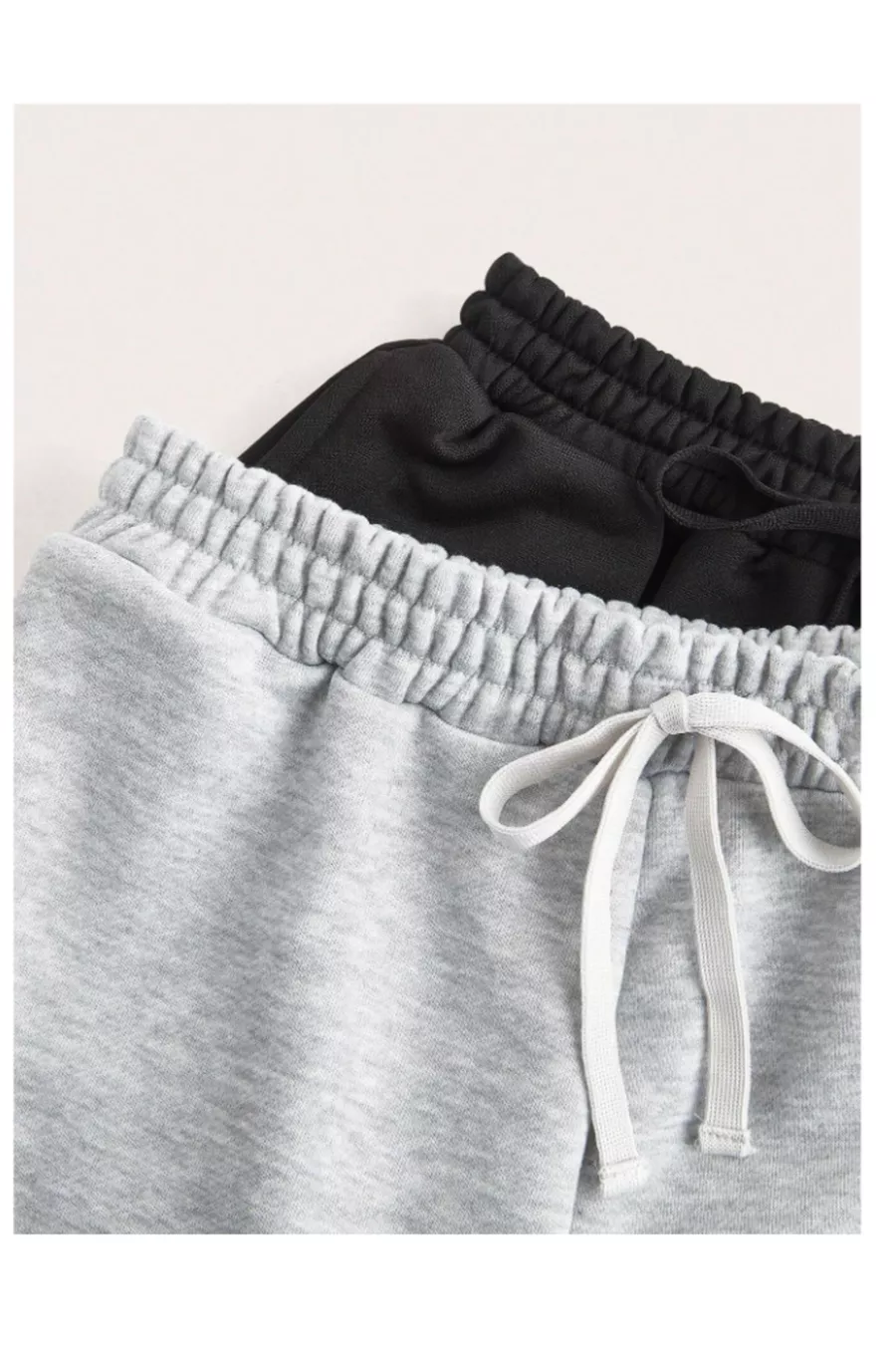 Дамски черно-сив свободен спортен панталон с еластична и удобна материя İKİLİ ШАХ МОДА