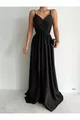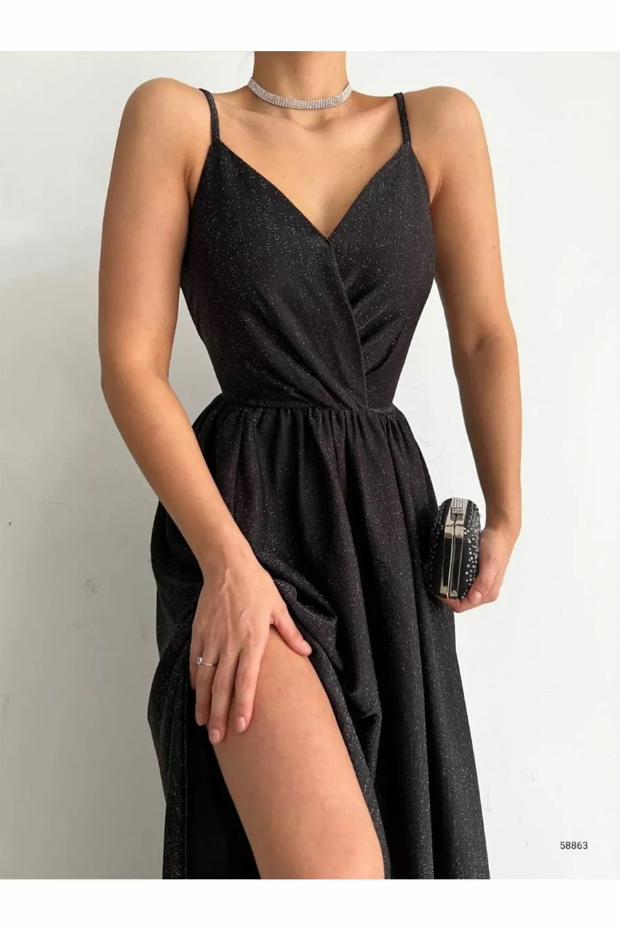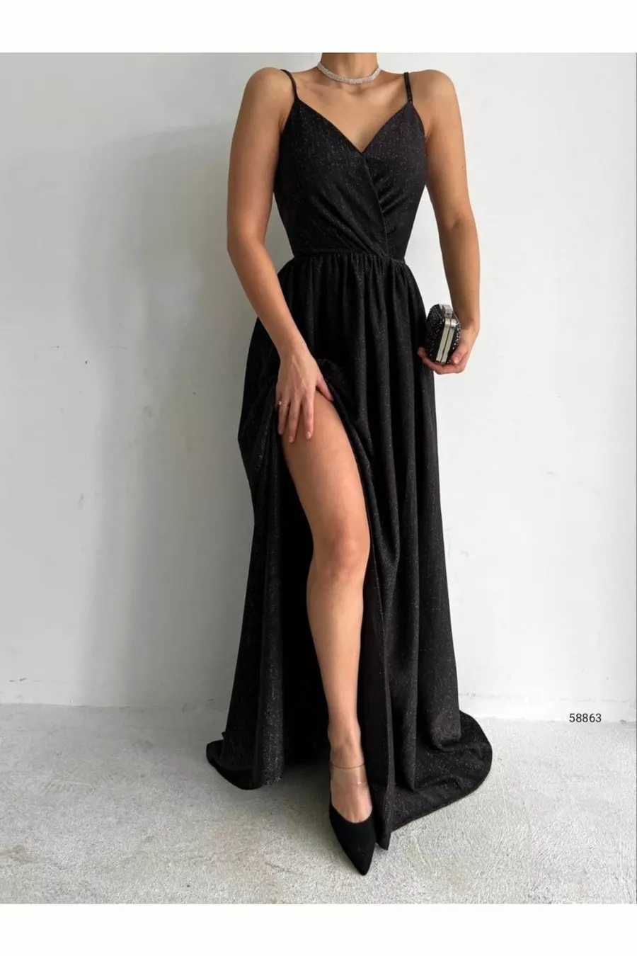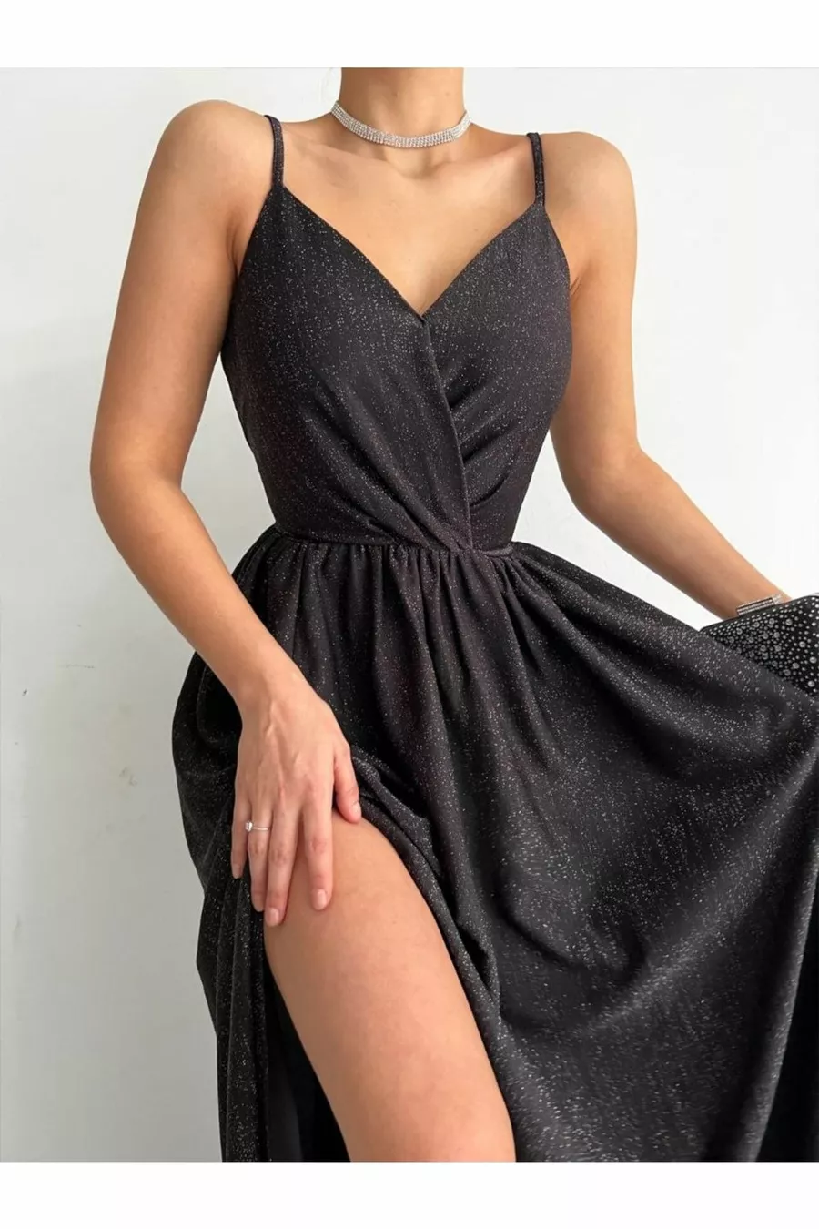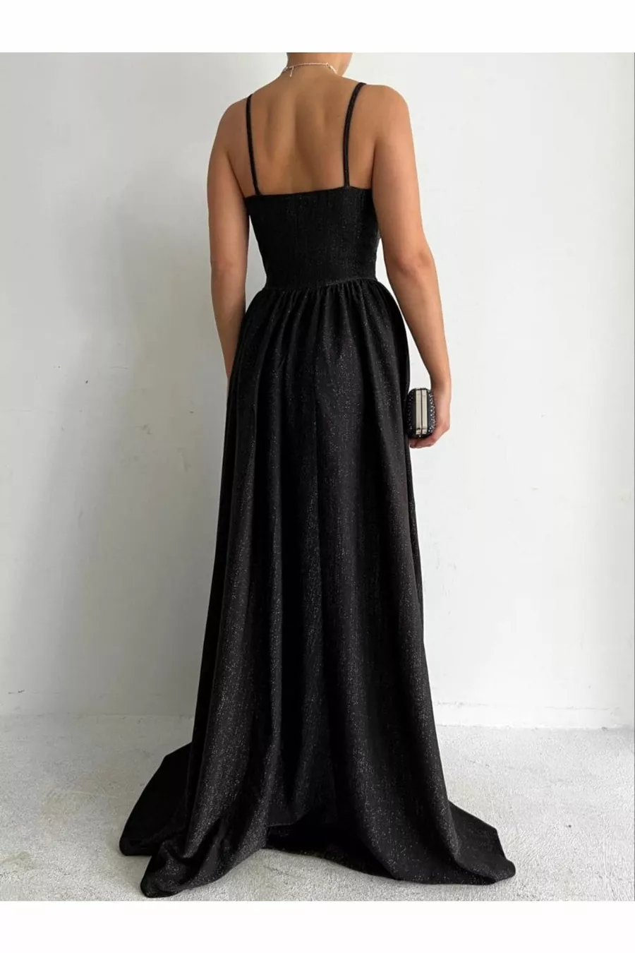Двуреден яка блясък дизайн цепка вечерна рокля сватба годеж дипломирането рокля