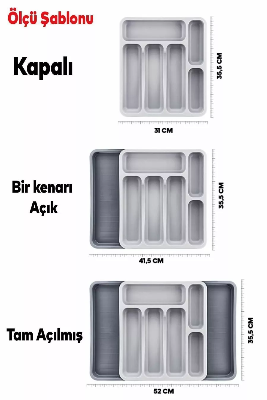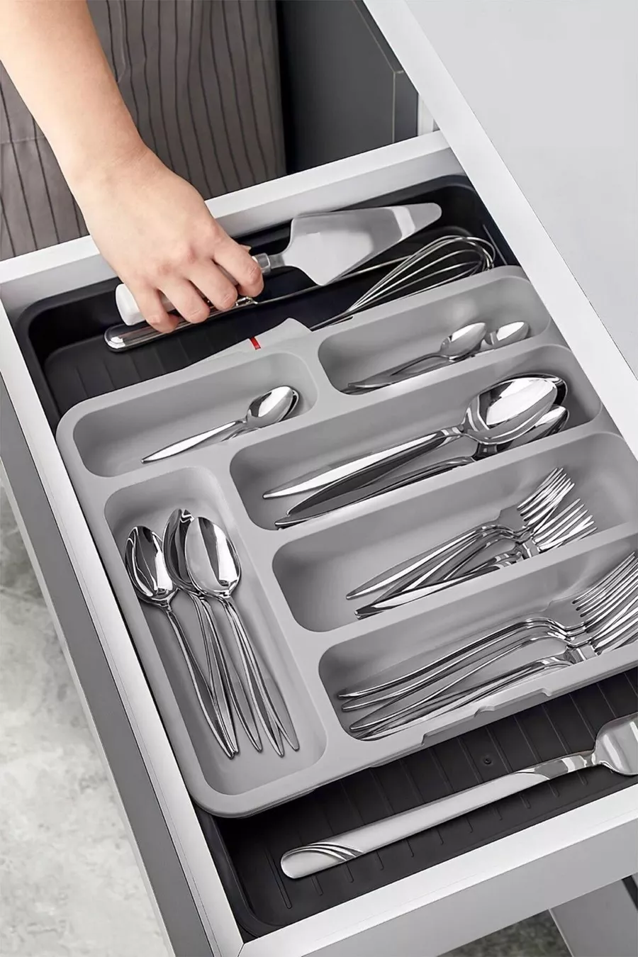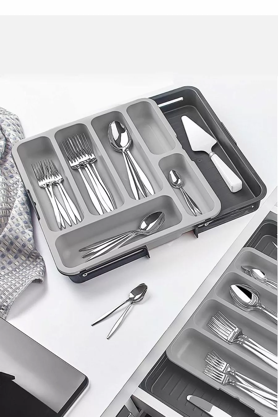 Двустранен регулируем органайзер за чекмедже за лъжици, разтегателен организатор за вилици и ножове